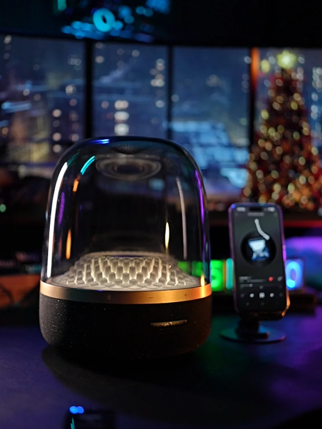但萝卜青菜各有所爱,哈曼卡顿黑金琉璃4的梦幻科技感真的戳中了我的心窝❗️透明水母型外壳搭配全新钻石矩阵,不开灯已经很好看了,开了灯超炫酷!五种氛围灯效看心情切换~