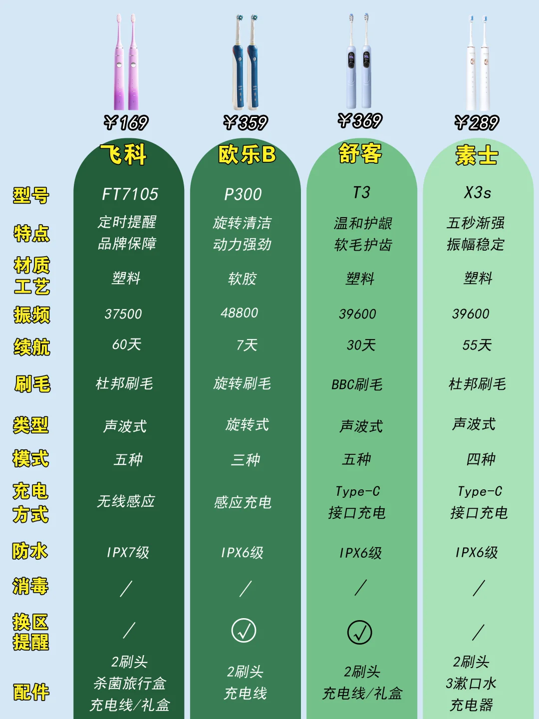 [暗中观察R]首先,先来了解一下9款电动牙刷的基础参数信息,再来看一下选购要点解析📚
