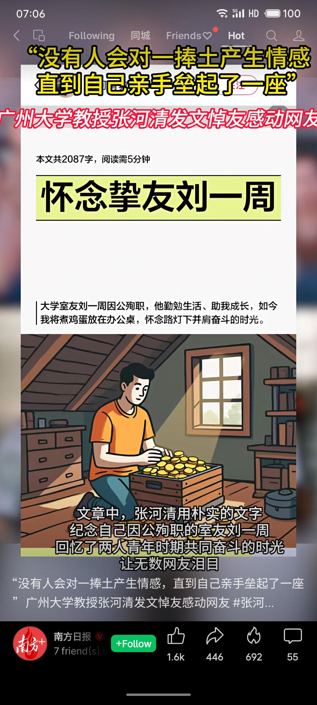 一捧土的深情,源于两人亲手垒起的青春。广教授张河清悼念因公殉职的室友刘一周,鸡蛋承载着清贫岁月里最质朴的温暖。三十载执教,二十六万桃李,他以一生实践挚友“让孩子走出大山”的夙愿。这份穿越时空的兄弟情,在功利时代更显珍贵。