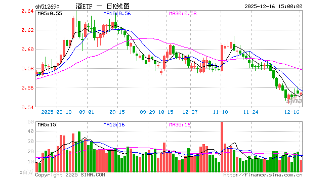 12月16日,酒ETF(512690)涨0.18%,成交额6.52亿元。当日份额减少2.25亿份,最新份额为360.57亿份,近20个交易日份额减少4.86亿份。最新资产净值计算值为199.76亿元。