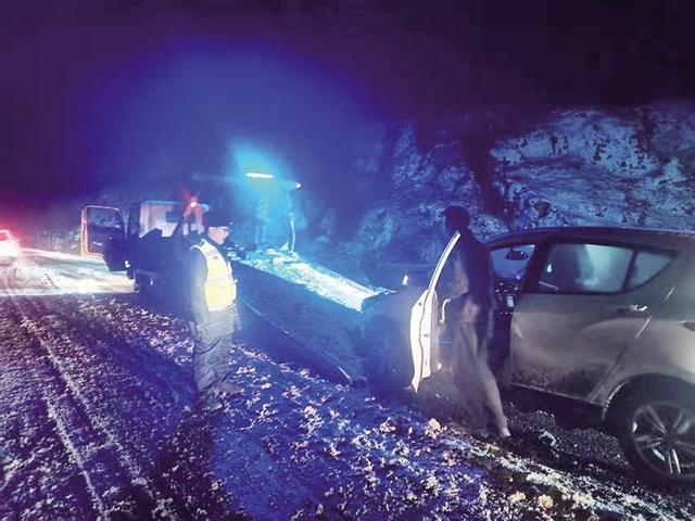 当日20时许,气温已接近零下20℃,路面残留的积雪结了层冰壳。清水河县公安局交管大队一中队接到指挥中心急报:一辆晋F号牌小轿车在109国道境内抛锚,车内4人是外地来的,既不熟悉周边路况,也找不到救援渠道。