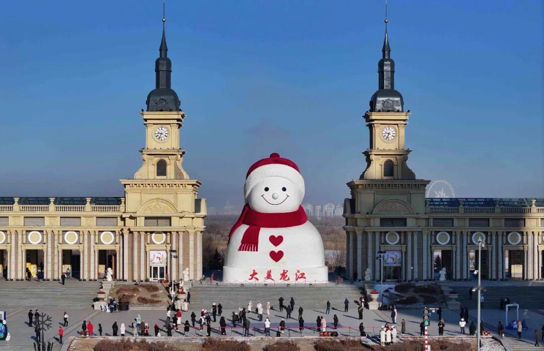 12月16日,哈尔滨网红大雪人又一次建成“回归”,此次大雪人身高19m有余,体态