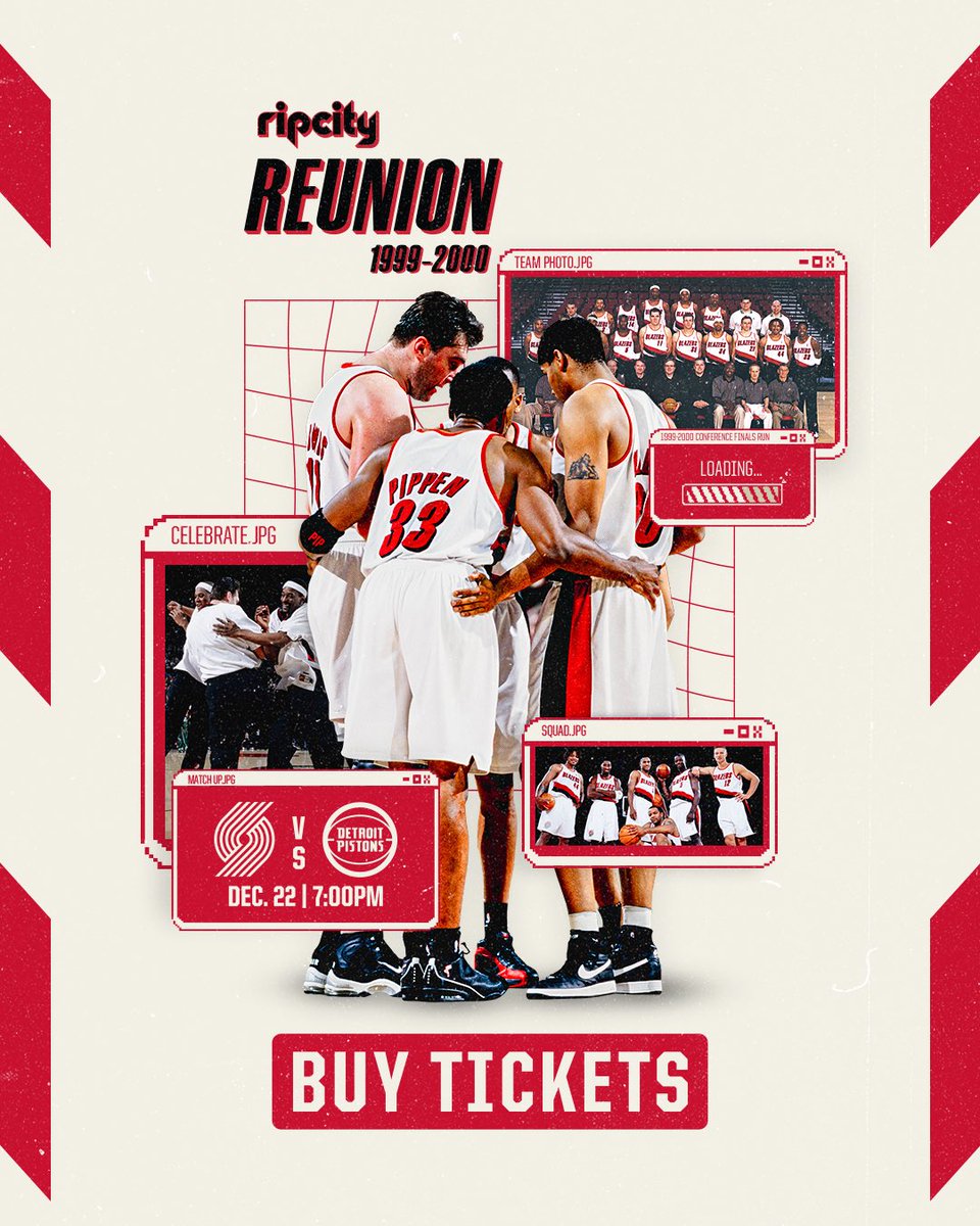 ARIPCITYREUNION‼OnDecember22,whentheteamtakesontheDetroitPistons,RipCitywillwelcomebackmembersofthe1999-2000TrailBlazersteamwhomadeadeepplayoffruntotheWesternConferenceFinals.JoinusforaspecialcelebrationofoneofthebestteamsinRipCityhistorybysecuringyourticketsbelow!