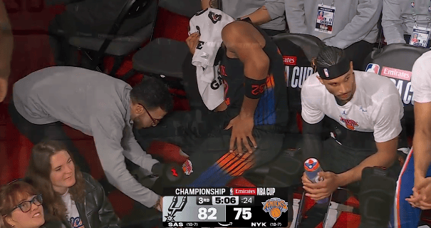 虎扑12月17日讯NBA杯决赛,尼克斯对阵马刺的比赛正在进行中。