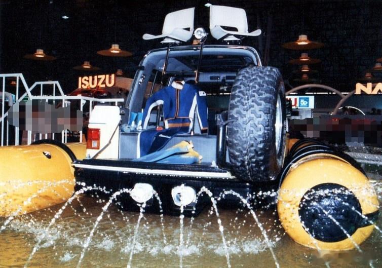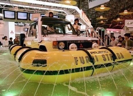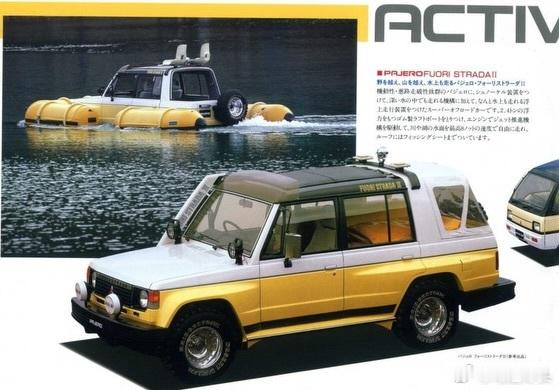 帕杰罗 1987 Tokyo Motor Show – Pajero Fuori Strada II.1987年东京车展上亮相的帕杰罗水陆两栖车是有史以来最具实验性的帕杰罗原型车。它有着更宽大的车身、重新设计的保险杠、拉力艺辅助灯、巨大的扰流板、敞篷的后部车顶结构、车顶座椅,全新的下拉式尾门。它设计成可以在水上行驶,配备了浮筒和喷气推进装置。可惜它从未进行大规模生产,但却让人难以忘怀。三菱帕杰罗车中泊工作35年被延迟退休的自白