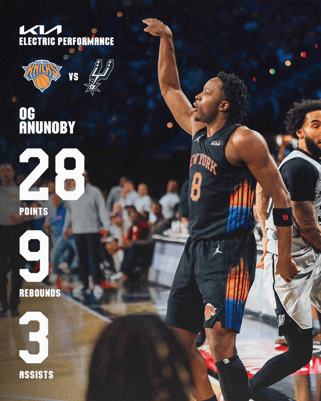 攻防一体!尼克斯官媒晒阿奴诺比海报图:OG此役火力全开!