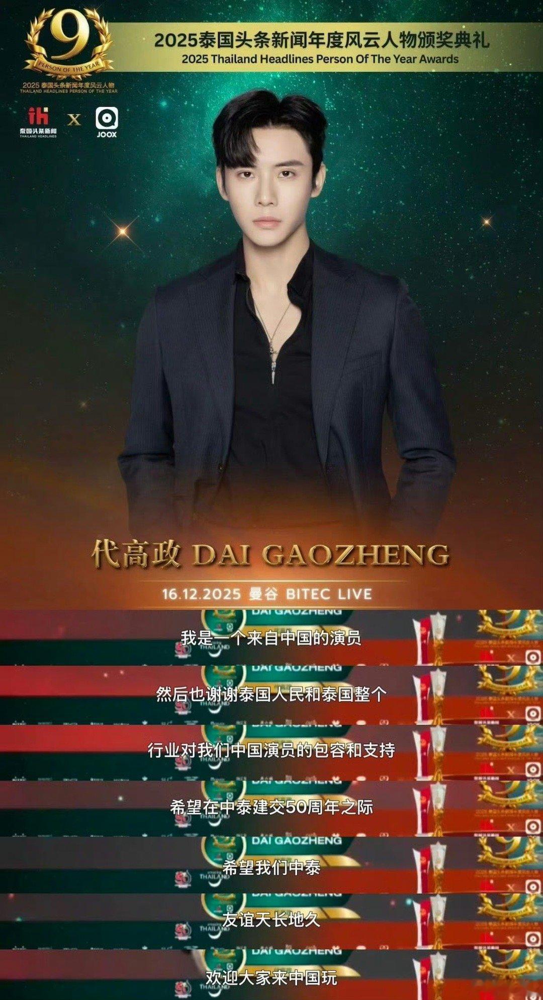 代高政这段发言格局打开了 代高政在泰国颁奖礼的发言,直接把格局拉到最大!谈吐间的