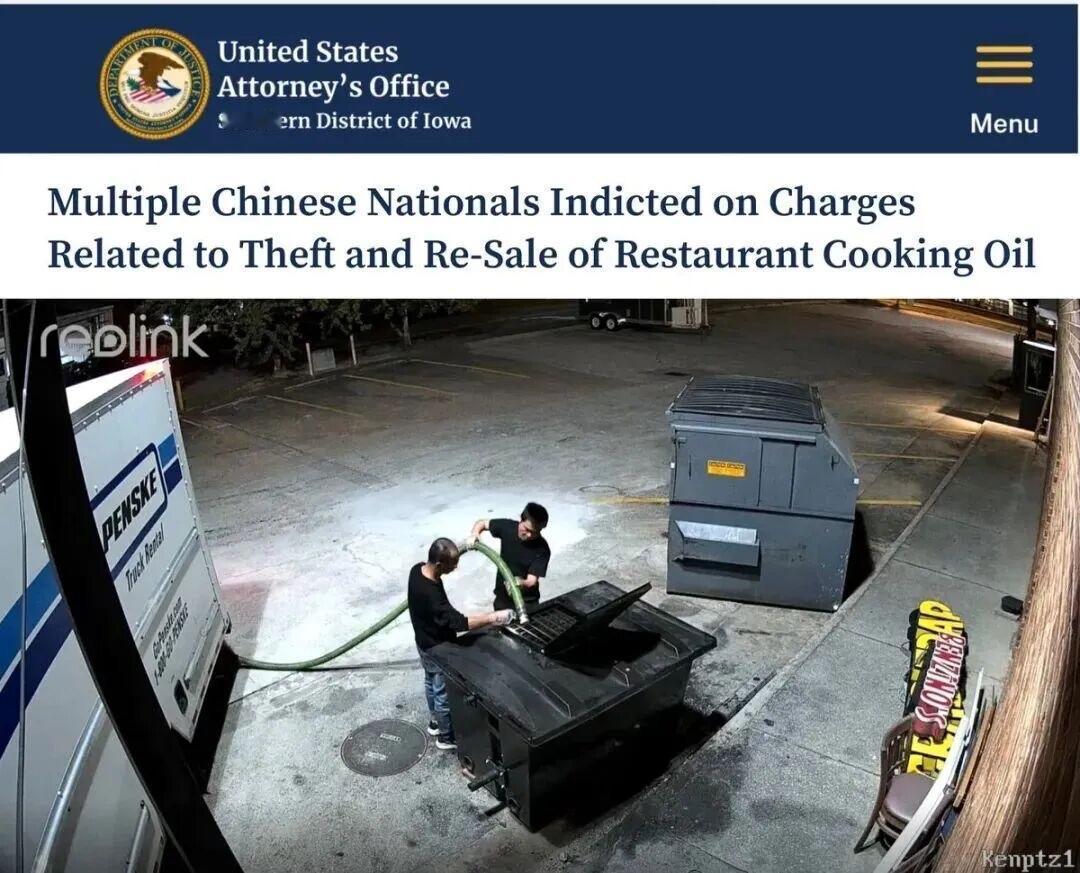 12月9日,美国联邦调查局一举抓捕一起13名中国人跨州盗窃地沟油的案件,震惊全美。这一个团伙成员全部来自中国,偷窃贩卖地沟油,据说数额达到数万吨之多,涉案数百万美金。 这个团伙一共13人,分别是陈天竹、陈敬柳、陈勇、张丹荣、王福康、郭贤泉、黄建发、王福涛、王向京、王杰、邹长旭、邹长宇、邹文荣,看他们的名字,应该能看出来他们很多是兄弟或者同乡。 这个团伙分工明确,长期驾驶卡车游离在美国州际公路,伺机在美国爱荷华、田纳西、明尼苏达、阿拉巴马、密苏里、内布拉斯加、卡塔基等十几个州活动,在餐馆油料回收罐中盗取地沟油。 地沟油过去管理不规范,中美都一样,导致地沟油被回收后重新加工成食用油流入市场。后面采取专门回收,需要有资质的公司才能运营。随着生物柴油技术的成熟,地沟油成为有价值的回收物,很多人盯上了这块肥肉,在美国也不例外。这13个人显然是没有运营资质的,所以只能铤而走险,利用美国餐馆下班早,放在门外等回收的地沟油无人看管,因此他们就钻了空子。这些油收集起来后,最终也是卖给做生物质柴油的企业,或者走私出境。 这些人可以说非常聪明,转卖地沟油获得的大量收益,为了合法化,还通过购买各种加密货币方式来洗白,从而变成合法收入。 目前他们都面临美国联邦法院的盗窃、转运赃物等多项罪名指控。这些都是专营的生意,动了别人的奶酪,人家怎么不搞你呢。