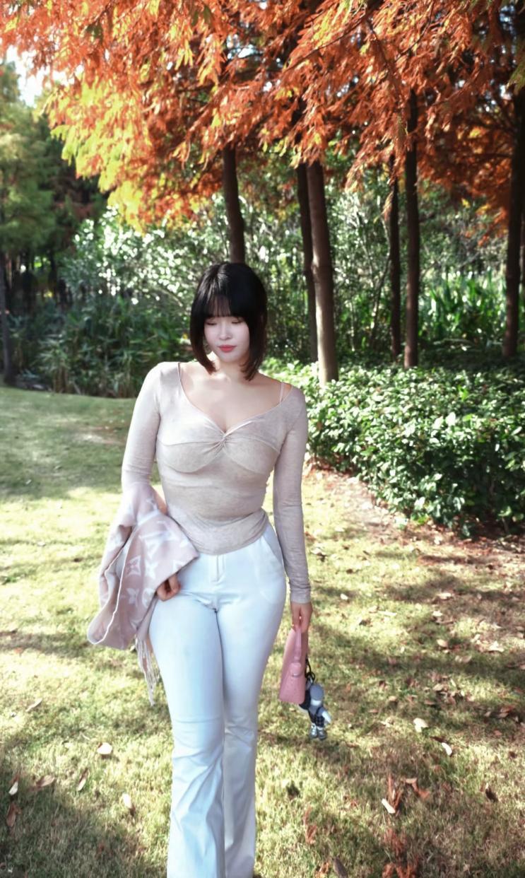 绿树掩映中,佳人倚栏立。怎样才能把女生拍出清纯的感觉 爬山拍照穿搭 美女即景 清