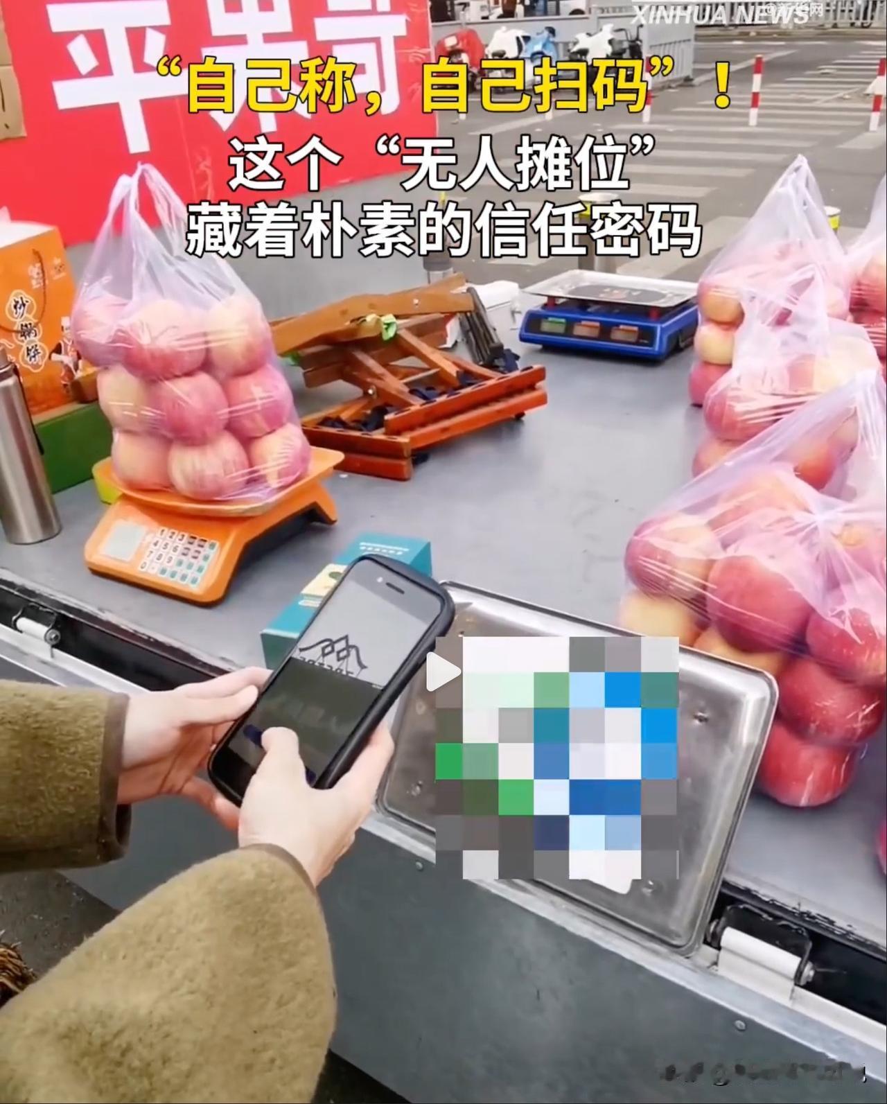 无人售卖苹果这招实在是太好用了,简直是现代版的“夜不闭户、路不拾遗”诚信典范。最近,在山东淄博上演了一场“诚信闯关”的游戏,那就是将苹果摆放在摊位上,顾客自行称重、扫码付款,老板却悠哉悠哉的摸鱼去了。但这样的效果却出奇的好,不但货没少、钱也没少,而且是一种双赢的经营方式。老板轻松了,顾客的体验感和自我诚信肯定感也出来了。这要是被欧美人看见了,会不会直呼不可能?