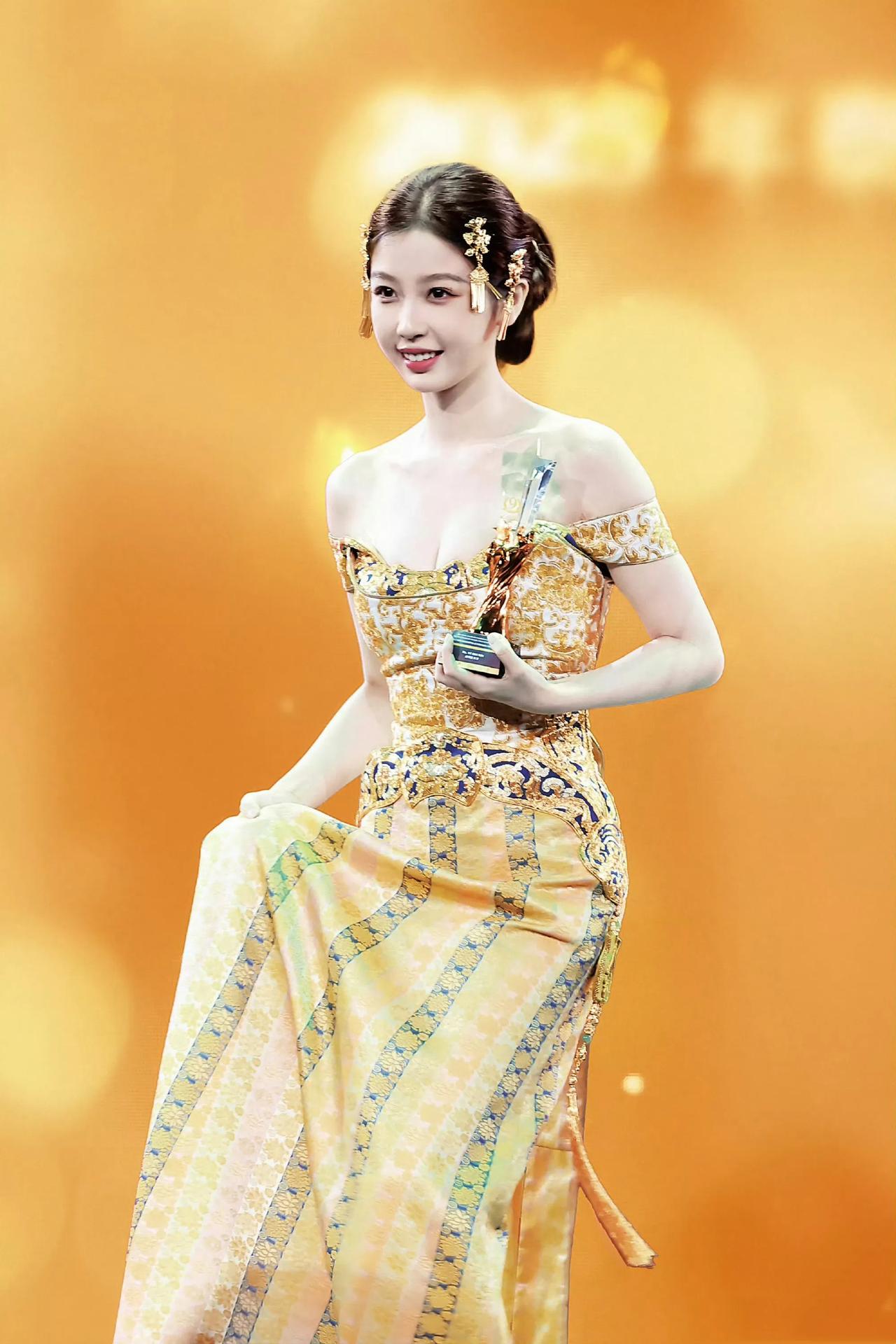 虞书欣泰国红毯压轴! 虞书欣作为压轴嘉宾出席2025年泰国头条新闻年度颁奖礼,身着手工刺绣鎏金色单肩长裙,搭配金蝶流苏发簪与中式盘发,整体呈现“油画质感”。生图状态因扛住外媒打光、肌肤透亮获赞“东方美学典范”,她斩获“年度最受泰国人喜欢中国明星奖”,领奖时主动宣传主演网剧《双轨》(泰译名《泰甜啦》),强调“推动中国作品出海,让海外观众了解中国作品”,呼应其长期的文化传播主张。虞书欣泰国红毯压轴 虞美欣 虞书欣抹胸裙 杭州虞书欣 虞书欣写真壁纸