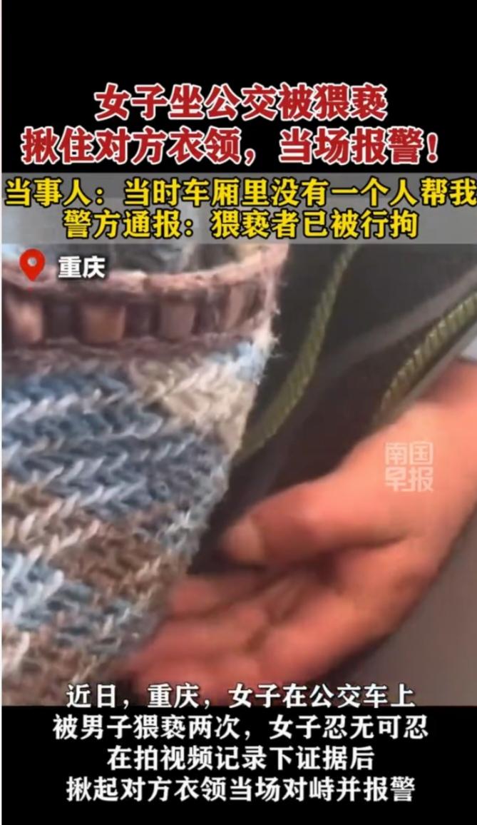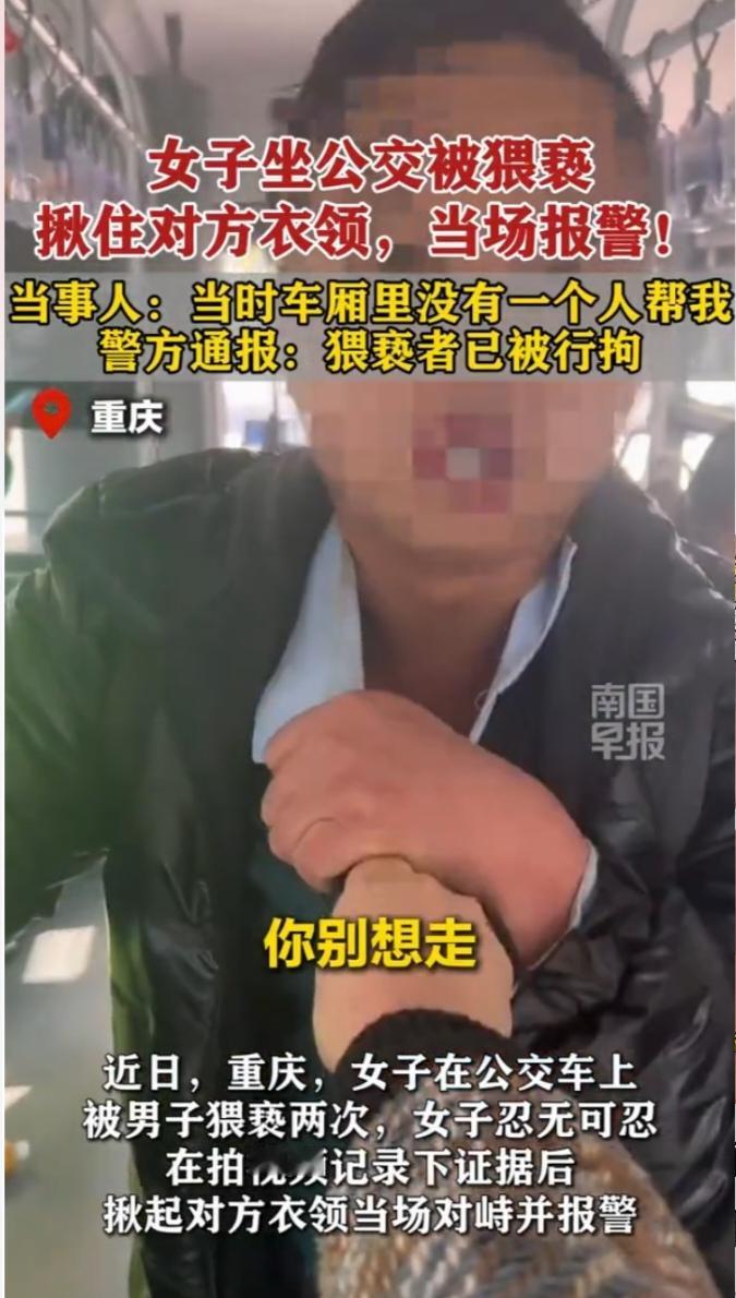 重庆45路公交:当女孩嘶吼呼救,满车厢的沉默比猥亵更刺骨 重庆45路公交的晚高峰,永远裹挟着拥挤与疲惫。谁也没料到,2025年11月的一个寻常傍晚,这方移动的铁皮车厢里,会上演一场令人脊背发凉的“沉默旁观”。 昏黄的路灯透过车窗,在攒动的人头里切割出明暗交错的碎片。女孩穿着浅蓝色卫衣,被挤在后门的扶手旁,正低头刷着手机。突然,一只布满老茧的手,贴着她的后背缓缓摩挲。她浑身一僵,猛地侧身躲开,厉声呵斥:“你干什么!” 猥琐的中年男人非但没收敛,反而露出戏谑的笑,手指又往她腰侧蹭去。女孩彻底爆发,掏出手机对准男人拍摄取证,左手死死揪住他的衣领,嘶吼着“全车人都看着!谁能帮我一把!” 车厢里瞬间安静了。有人慌忙移开视线,假装盯着窗外的霓虹;有人埋头刷着短视频,手指飞快滑动;还有人皱着眉往后缩,生怕惹祸上身。男人挣扎着辱骂女孩“小题大做”,甚至扬手要抢手机,可满车厢的乘客,竟无一人出声制止,无一人伸手相援。 女孩的声音从高亢到哽咽,最后她攥紧手机,拨通了报警电话。车到站时,她拽着男人的衣领,孤身走下车,身后是一车厢人的沉默。 数据显示,超70%的公交性骚扰受害者,都曾遭遇过这般“集体失语”。这不是个体的冷漠,而是“事不关己,高高挂起”的自保心态,在群体中发酵成的无声伤害。当恶行发生时,沉默从来不是中立,而是对施暴者的纵容。 当呼救声在拥挤的车厢里消散,我们每个人,都该问问自己:若下次身处现场,你会选择沉默,还是挺身而出?重庆公交 城市公交大姐 公交少女