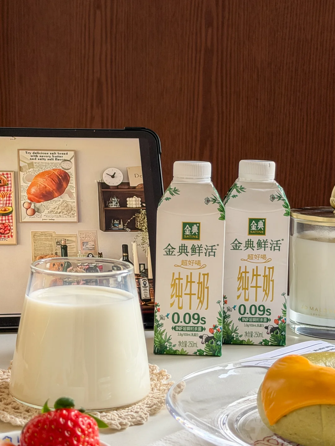 🍞现在早餐都喜欢搭配一瓶金典鲜活纯牛奶~一瓶牛奶搭配面包☀️开启元气满满的一天啦