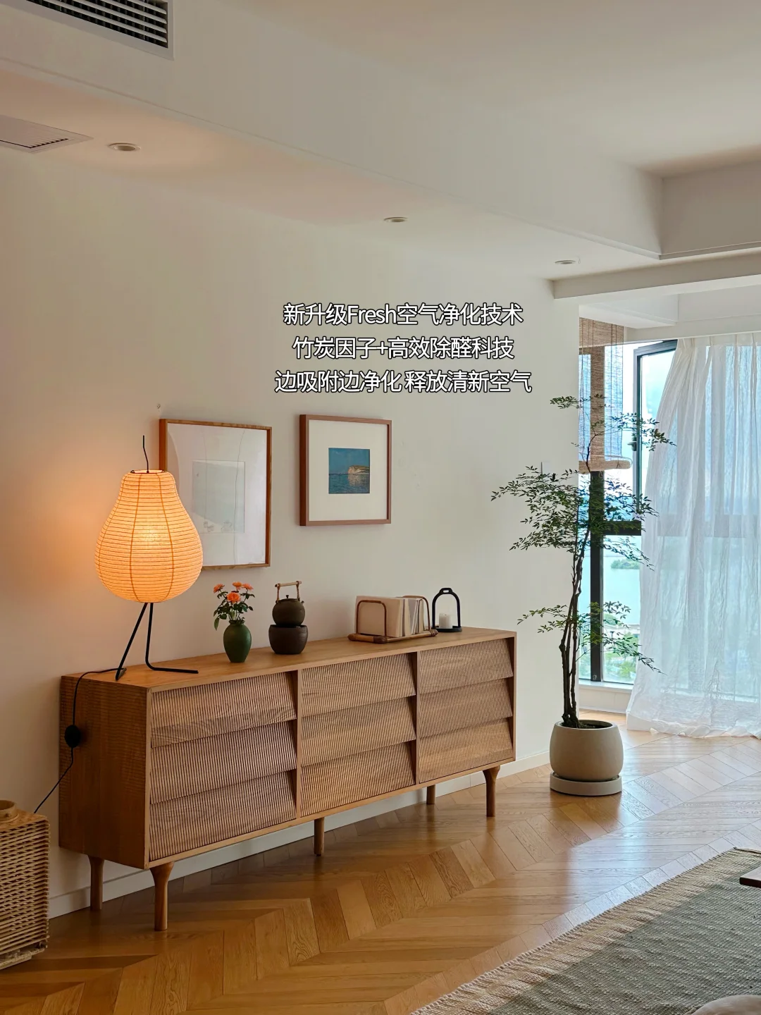 新升级的Fresh空气净化技术,里面的竹炭因子跟有吸附力似的,能把空气中飘着的游离甲醛都抓住,加上高效除醛科技还能净化完再释放清新空气;