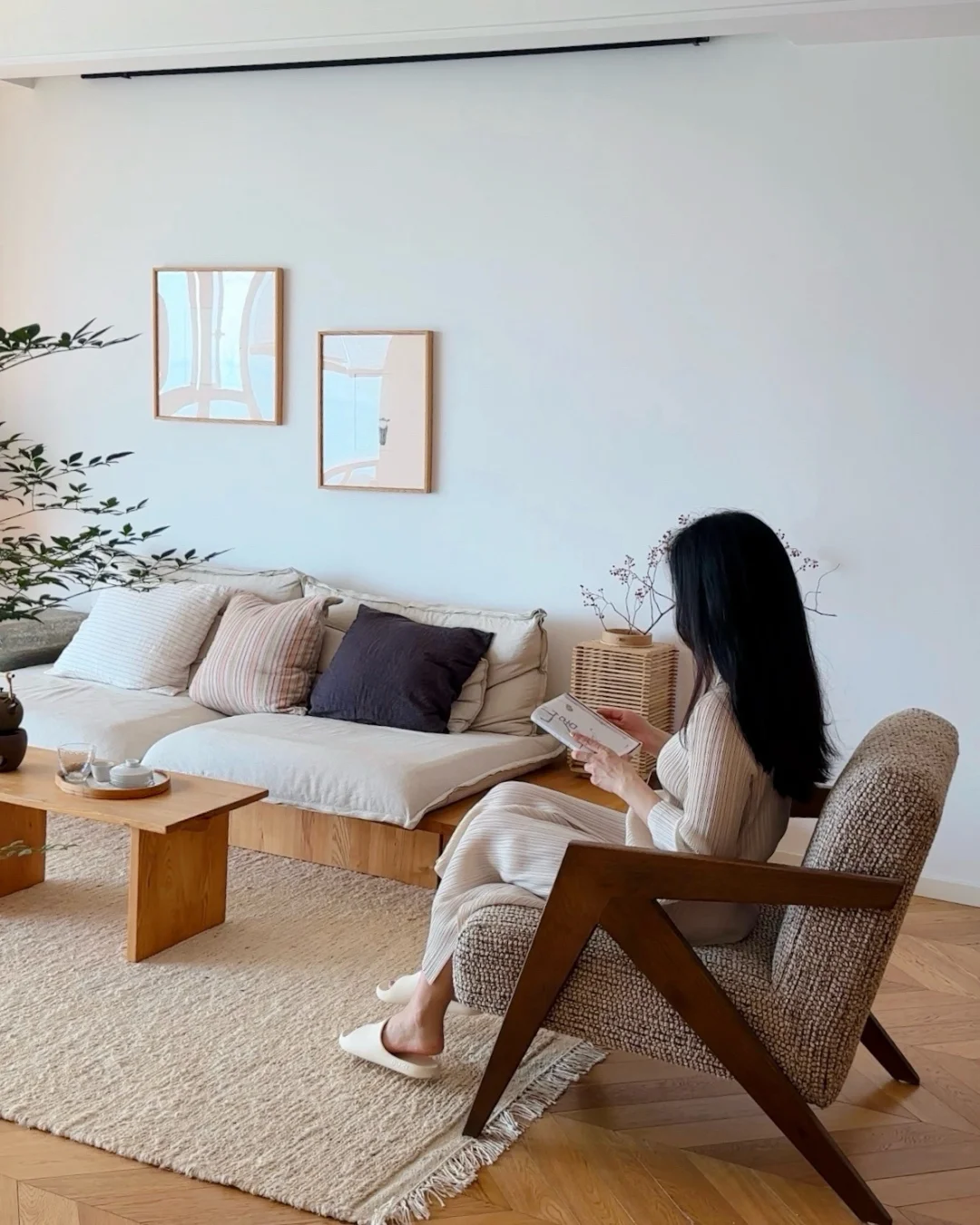 特别是和温润的木家具搭在一起,偶尔显得清冷,少了些家的包裹感🧺