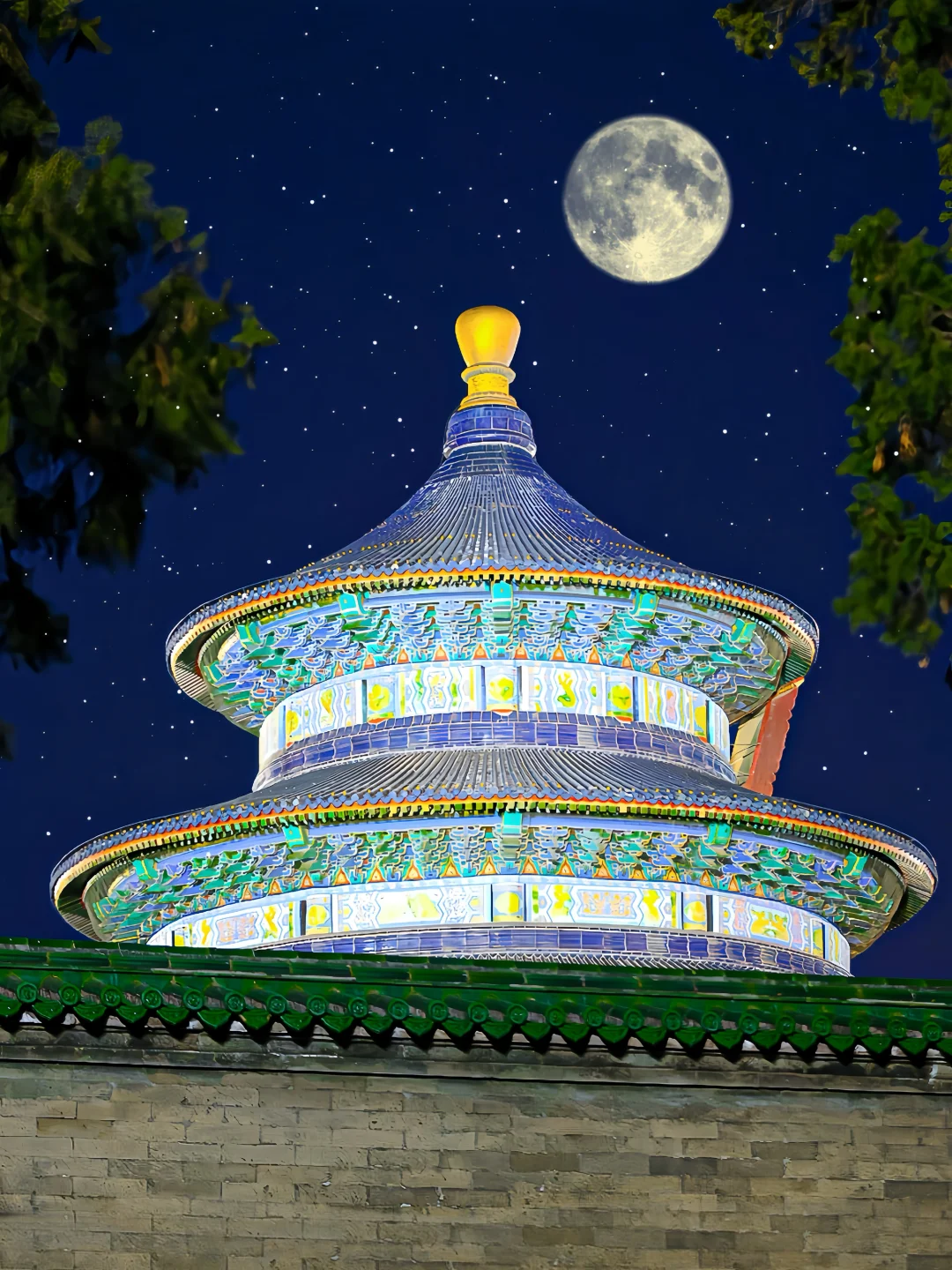 不同于白天的庄严肃穆,夜晚的更加古典梦幻尤其是月圆之夜,月光洒在祈年殿的蓝色琉璃瓦上真是“红墙蓝瓦,片片祈年”