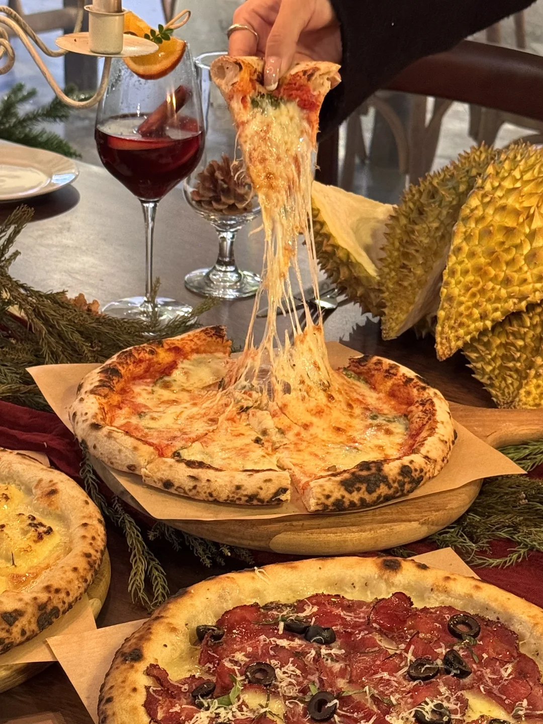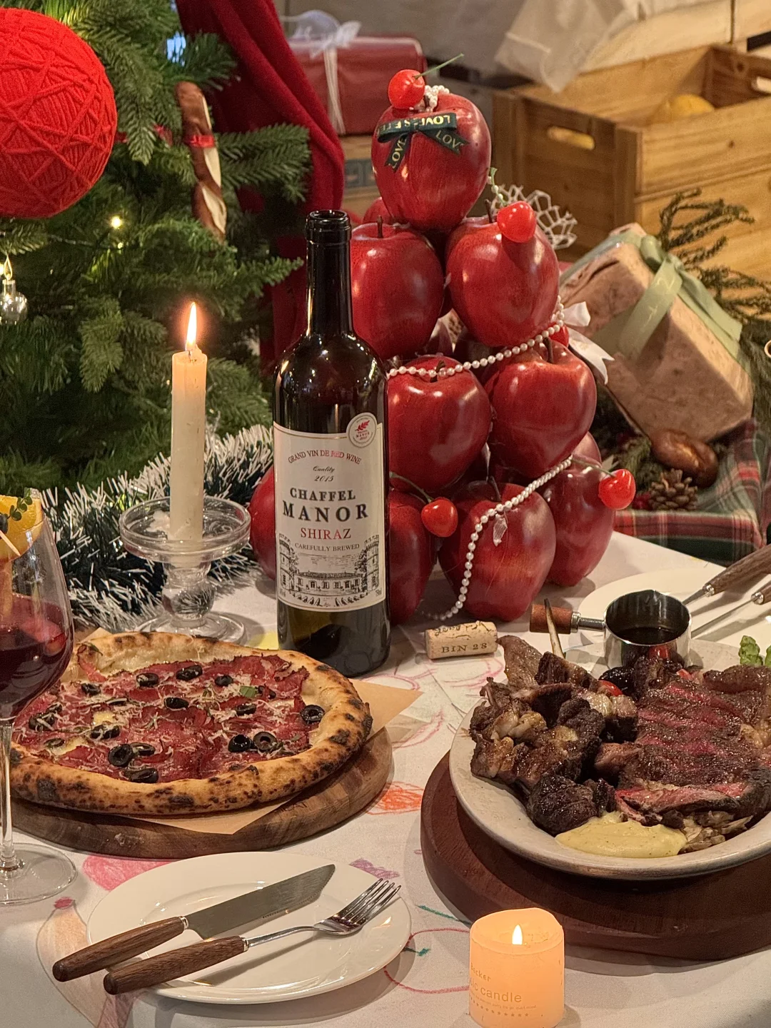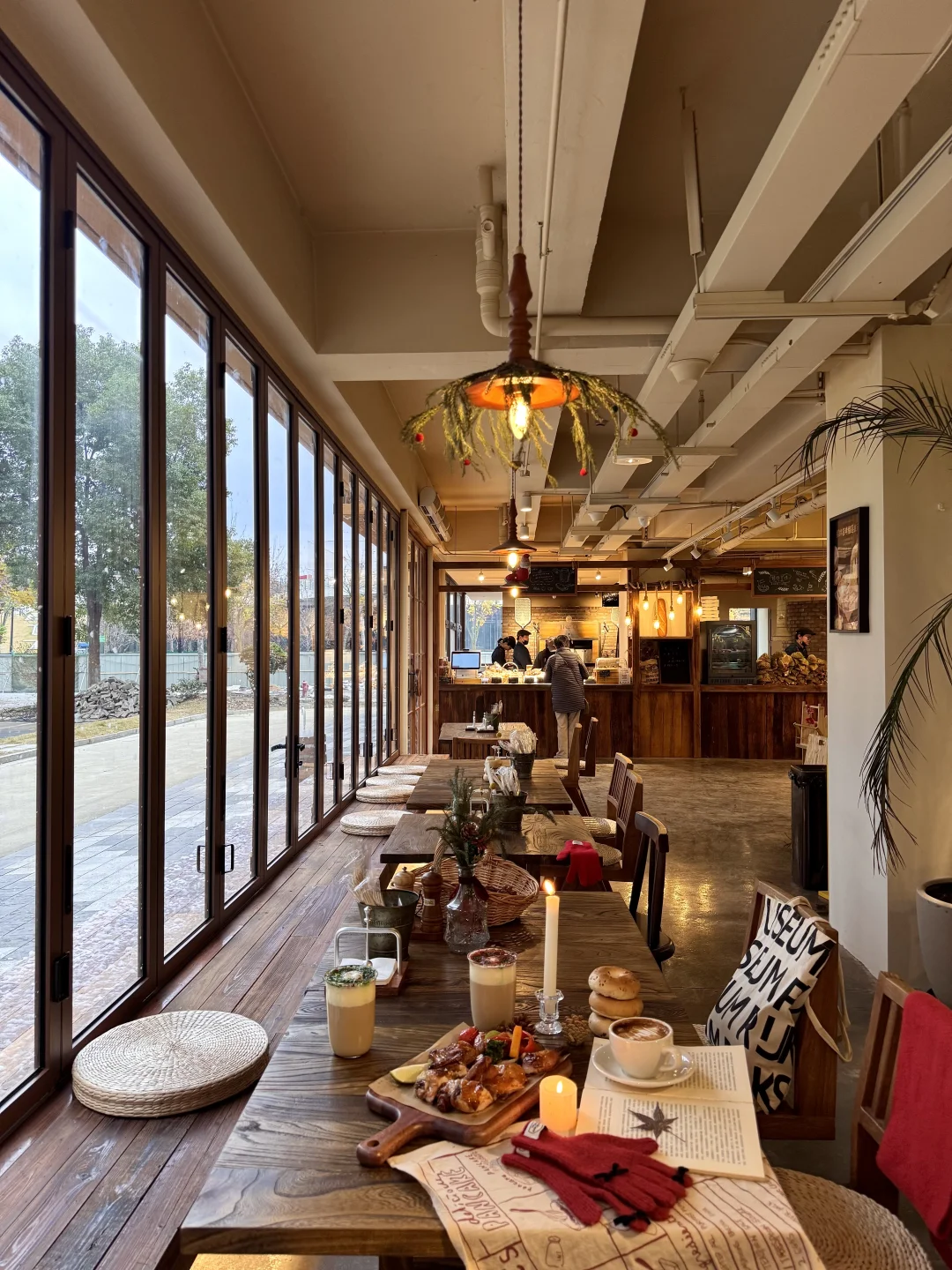 就在转塘街道的社区里!木质sense好温暖,临窗的位置就像画一样📷随手拍拍都很出片!不管是菜品还是环境我都愿意给满分!! 圣诞季和朋友点上一份香草烤鸡和牛排☺️氛围感瞬间拉满!!肉烤炙得嫩嫩的,空口吃或者吃蘸点料碟都好满足!热红酒、榴莲窖烤披萨…每一道都好看又好吃!