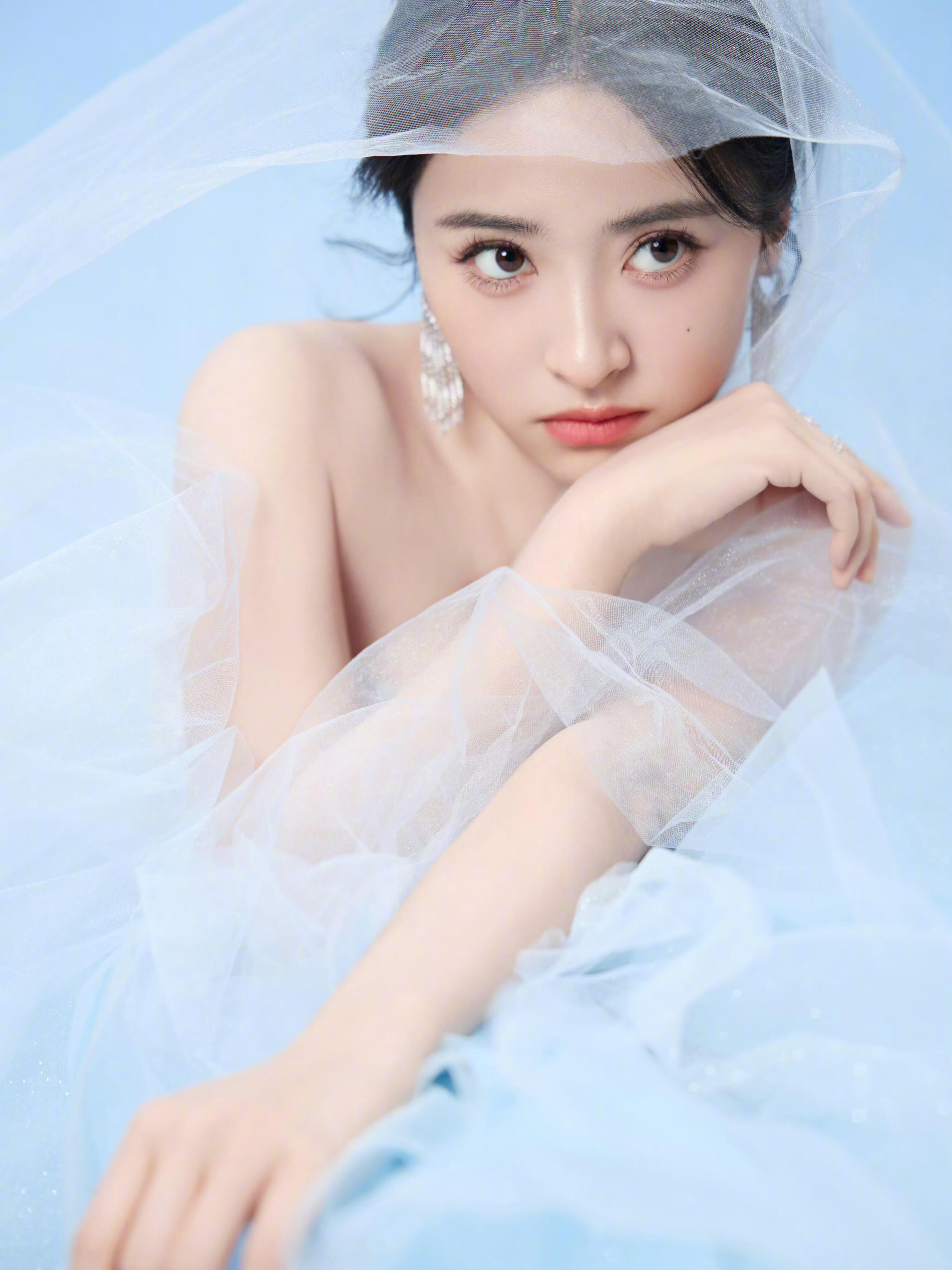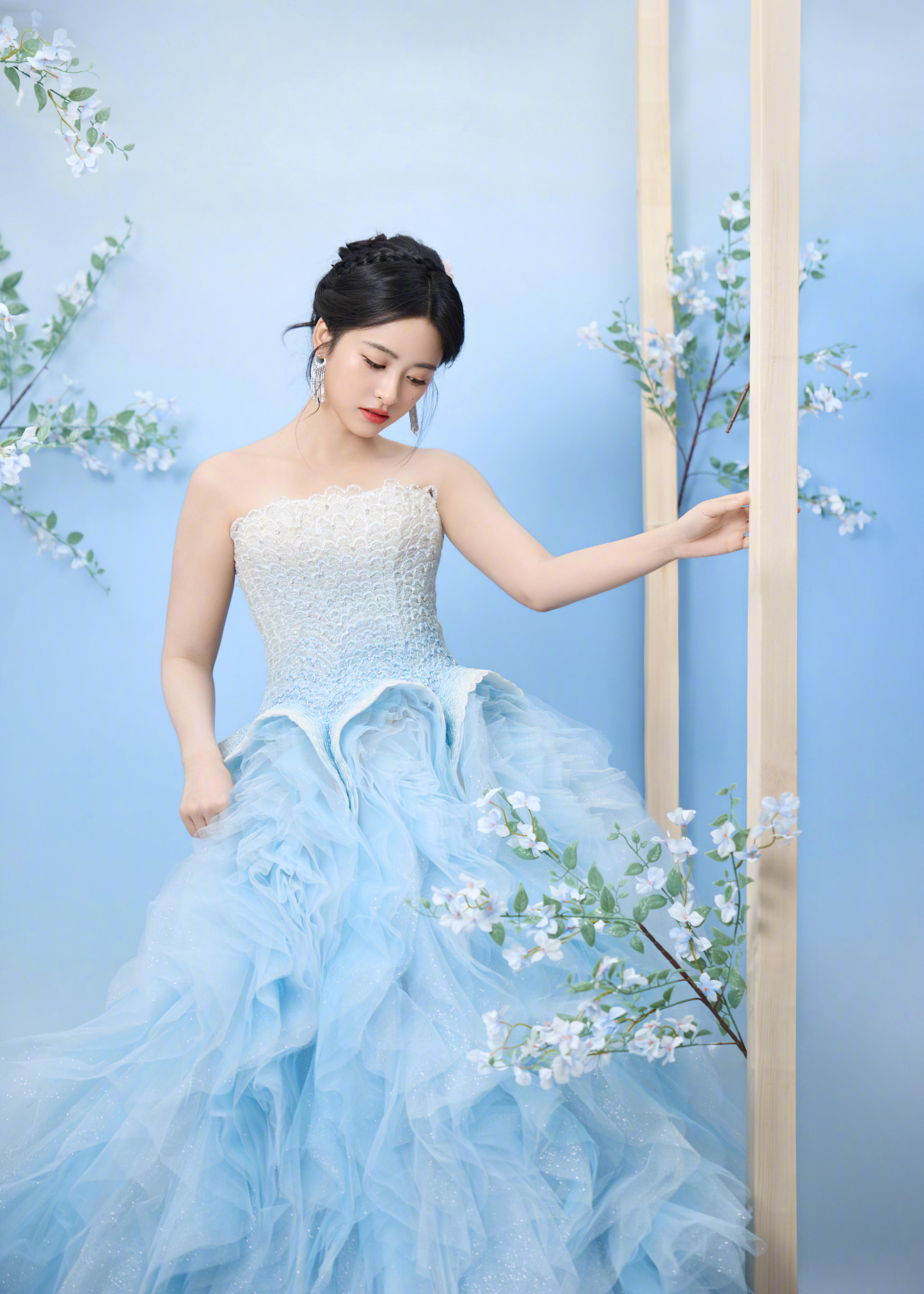 沈月简直是人鱼公主具像化沈月亮相2025国剧盛典,她身着淡蓝色抹胸礼服裙,精致的