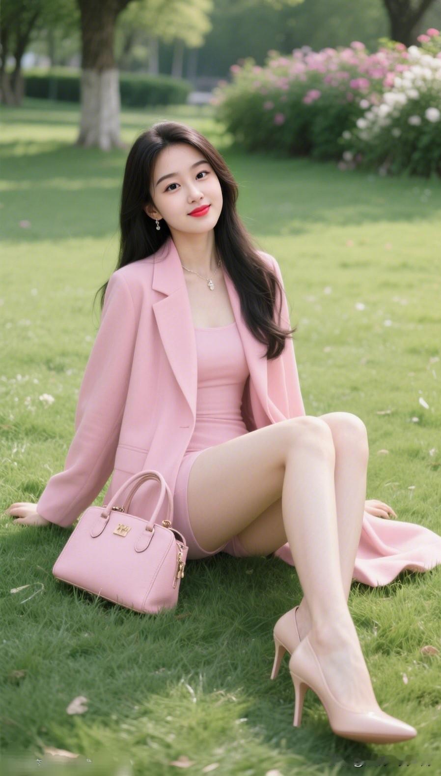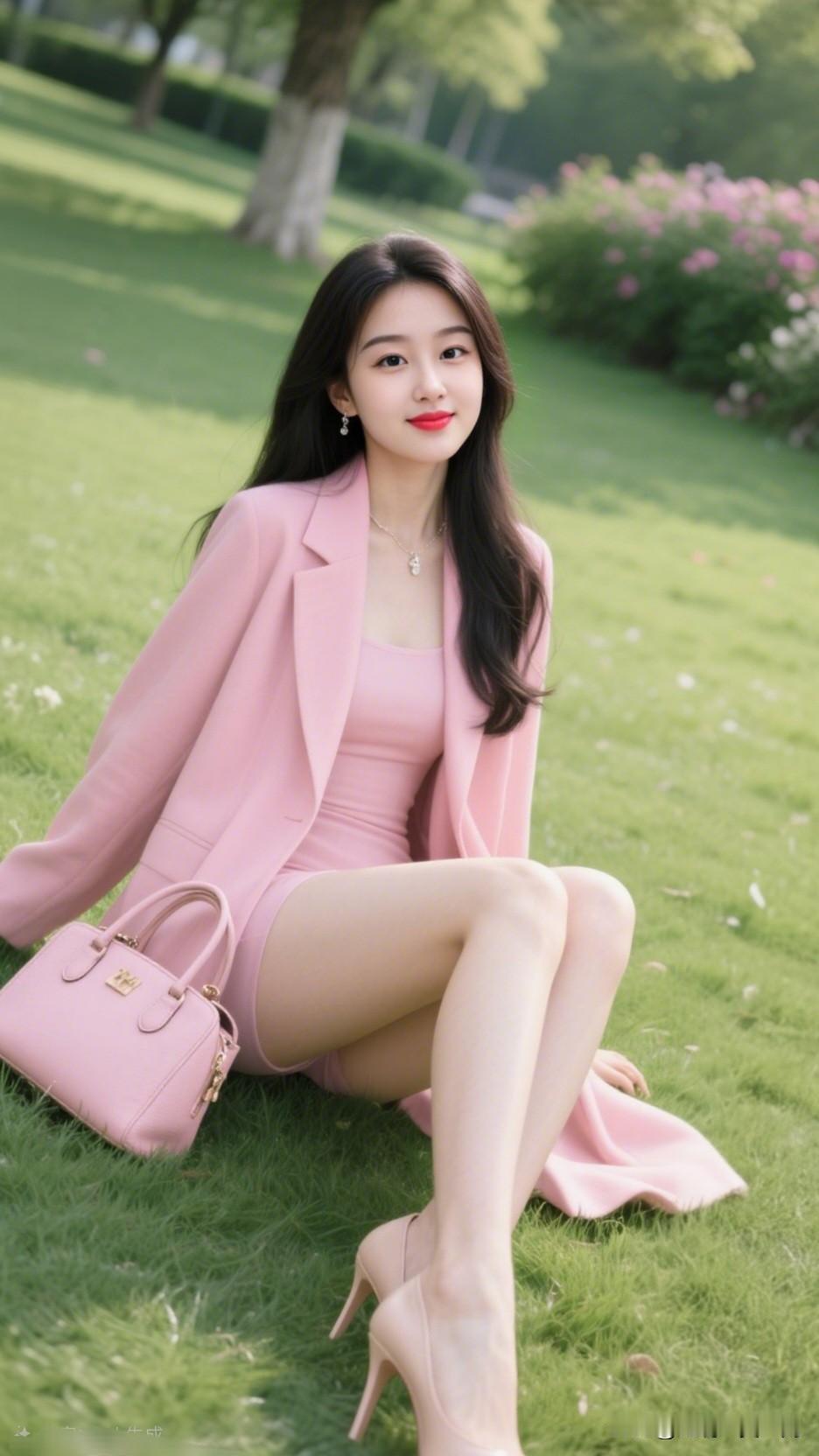 粉衣美人坐芳草,笑语盈盈似画中。分享生活随手拍 粉嫩春日穿搭,甜美少女心爆棚!🌸💗