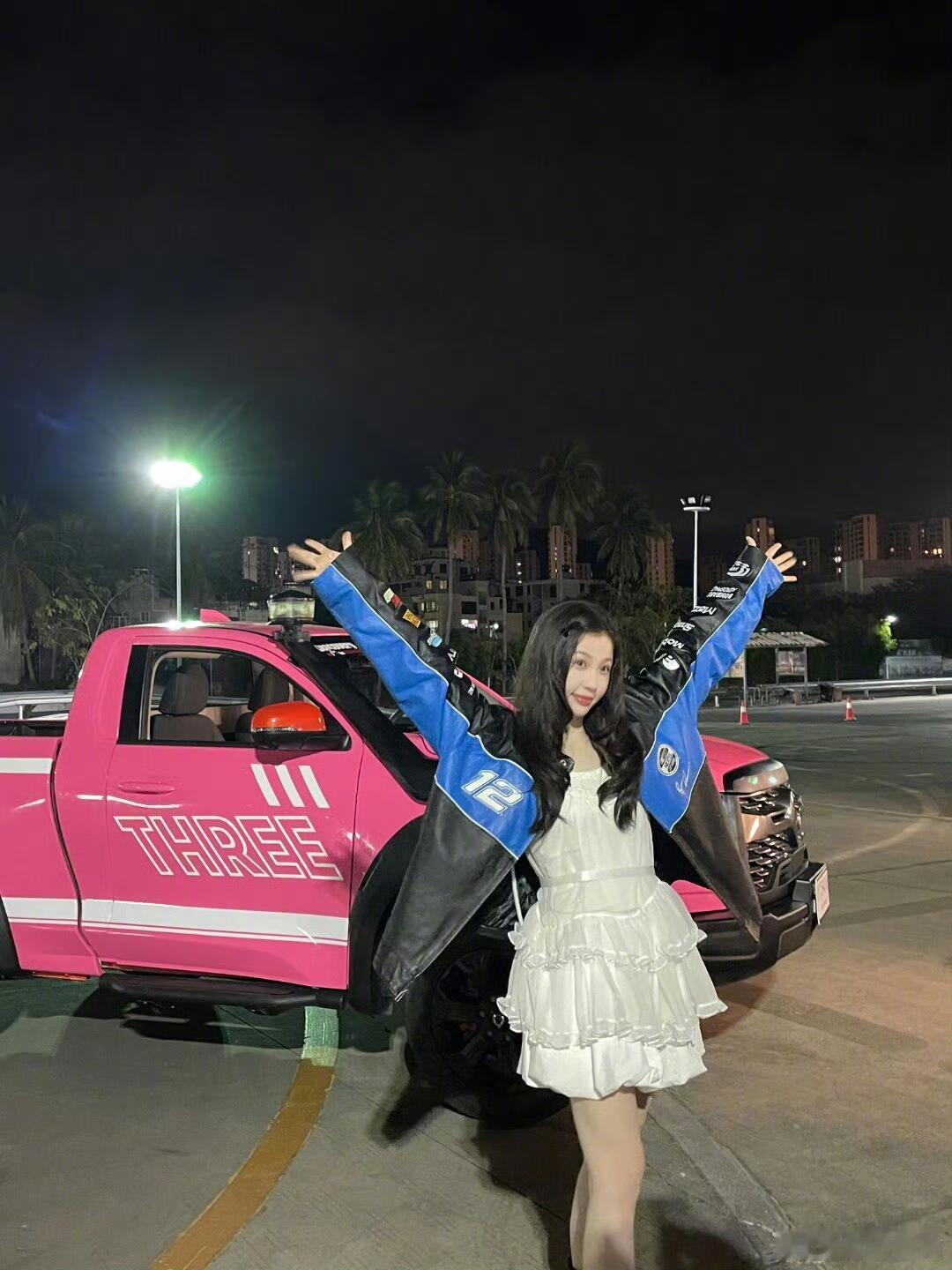 就这个虞书欣单手冷脸飙车爽 谁能拒绝虞书欣的反差魅力,粉色皮卡配上单手飙车的操作
