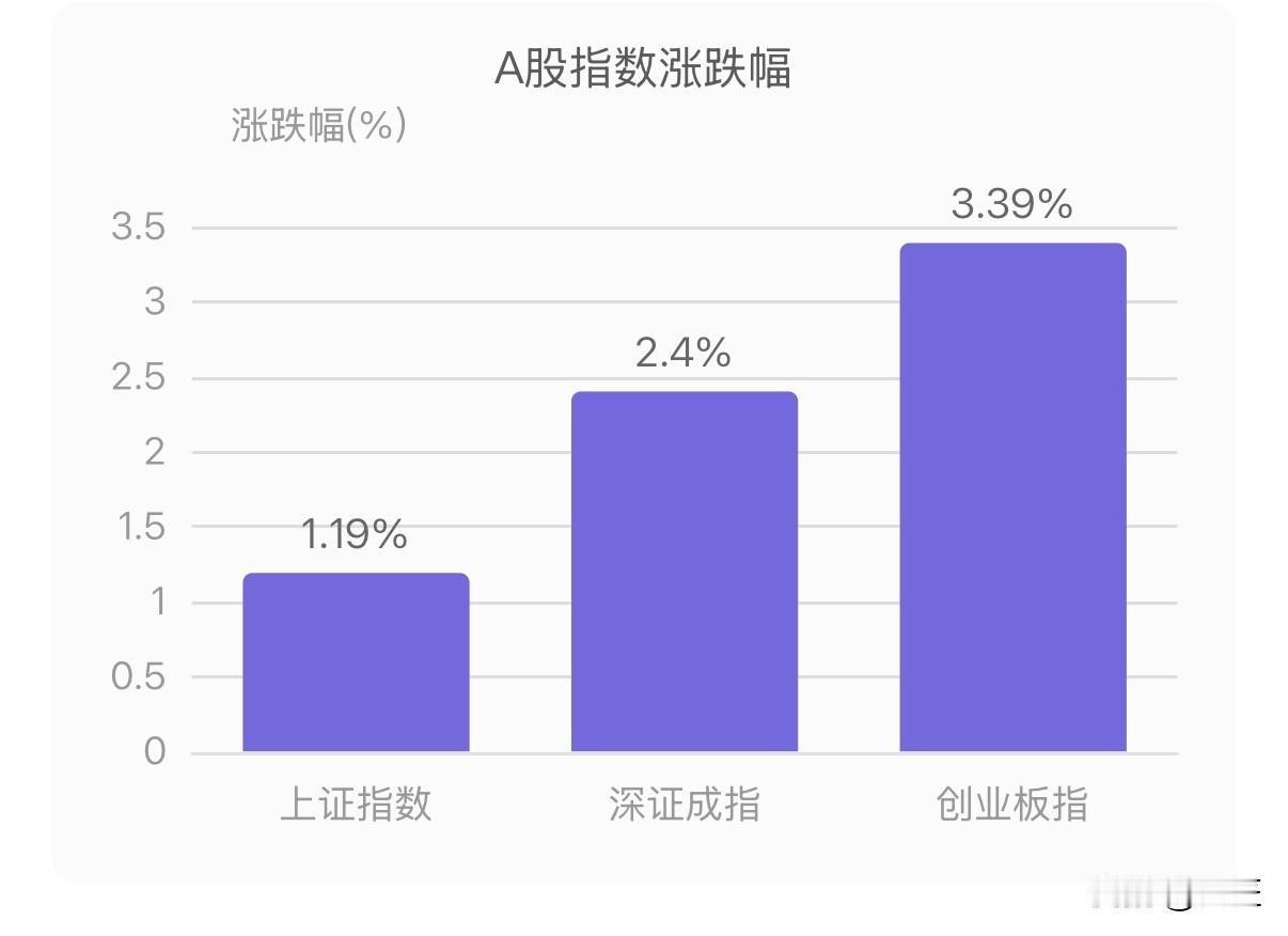A股今日强势反攻:牛市旗手归来, 有没有和我一样与牛擦肩而过的,满仓油气, 今天A股上演了一场精彩的"V型反转"大戏。早盘市场还在分化承压,午后却突然全面反攻,三大指数集体大涨。截至收盘,沪指涨1.19%站上3870点,深成指涨2.4%,创业板指更是暴涨3.39%领涨全场。 A股行情 A股回升