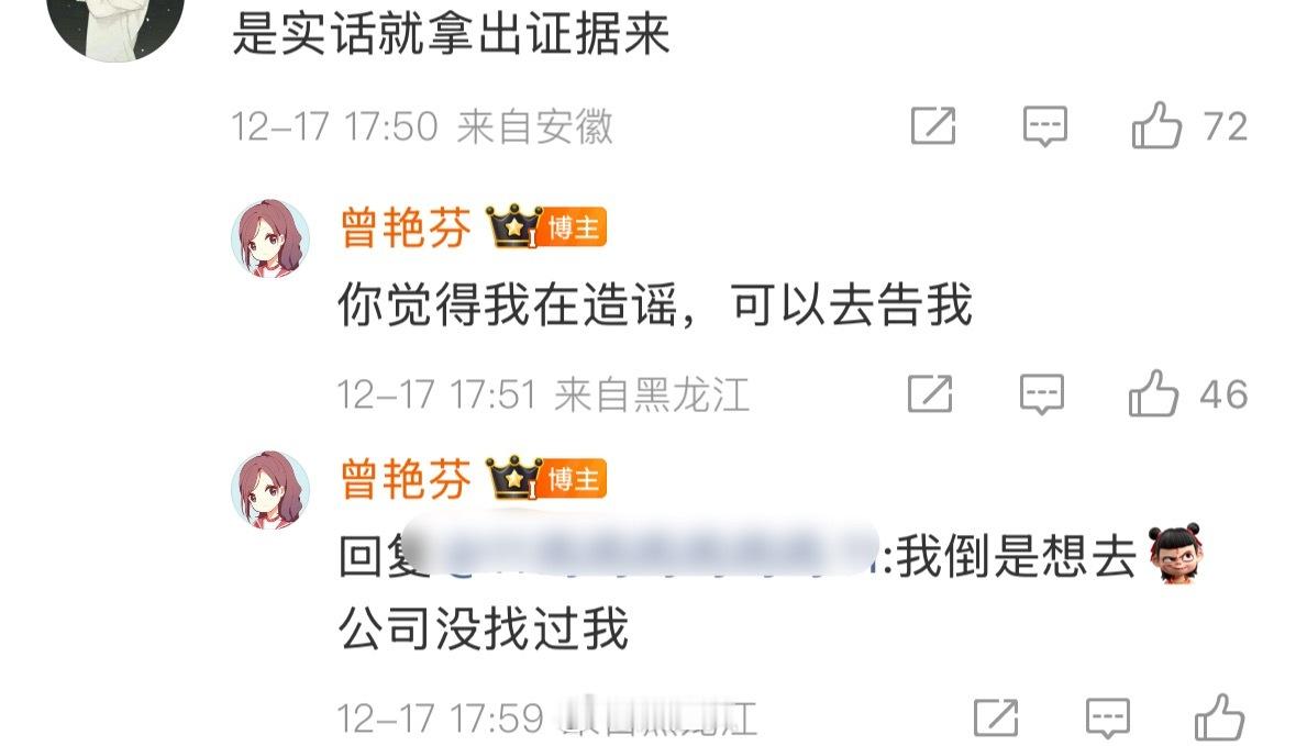 曾艳芬再回应 曾艳芬再发文回应“我想说就说了…你觉得我在造谣,可以去告我”曾艳芬