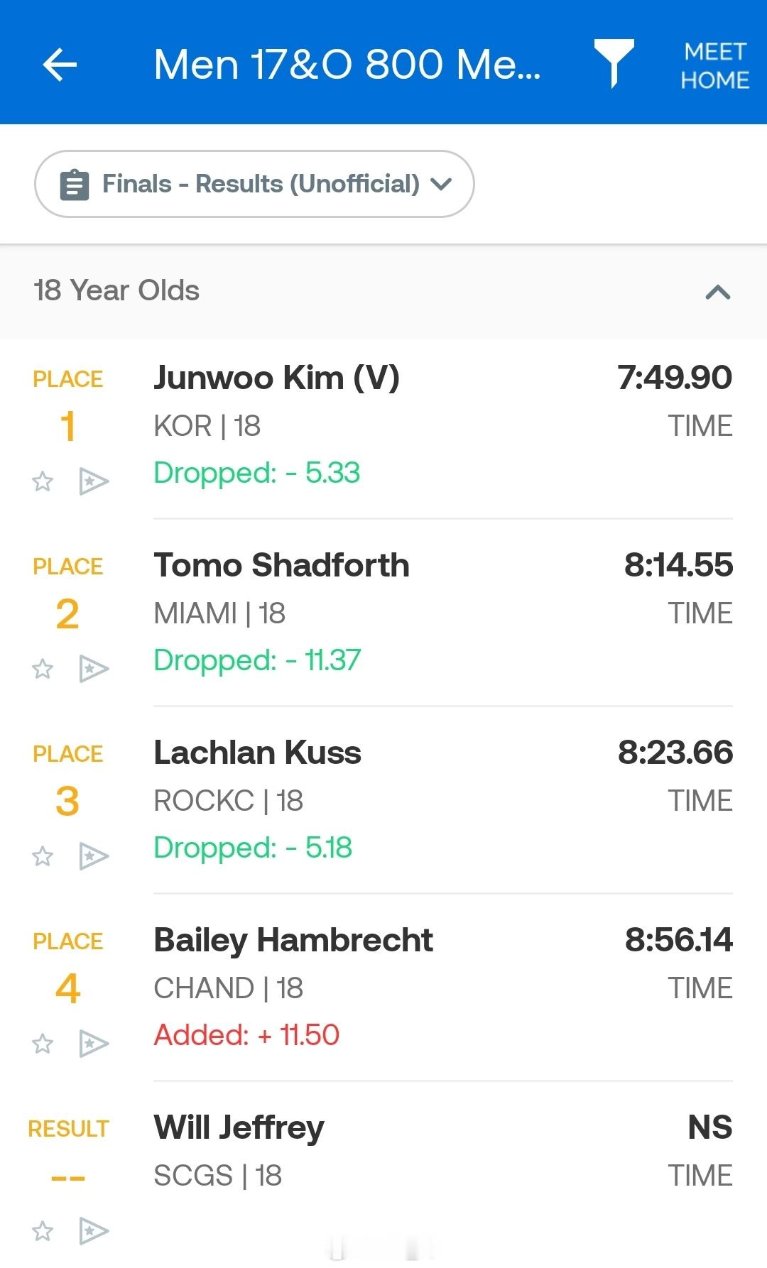 昆士兰州游泳锦标赛 男800自Short 7:46.33金俊宇 7:49.90 PB金俊宇这次比赛400/800/1500全部刷新PB