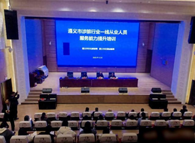 12月17日,由遵义市文化旅游局、遵义市交通运输局联合举办的“全市涉旅行业一线从业人员服务能力提升培训”在遵义市美术馆一楼多功能厅举行。全市涉旅交通运输企业、星级旅游饭店、等级民宿、旅行社、A级旅游景区及导游业务骨干等的100余人参加培训。