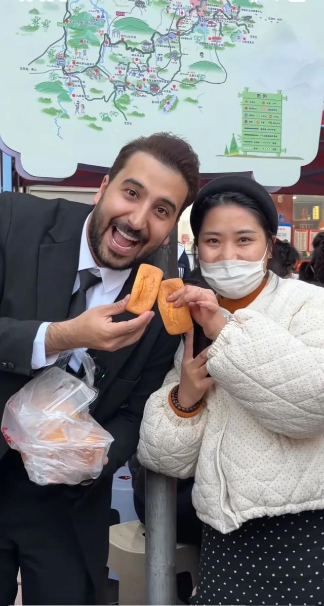 当晚,“老王在中国”身着标志性的西装出现在广德迎春街一家炖锅店前。在用餐过程中,周围不时有群众送来广德当地美食,“老王在中国”用流利的中文表达感谢,并热情地与粉丝合影留念。