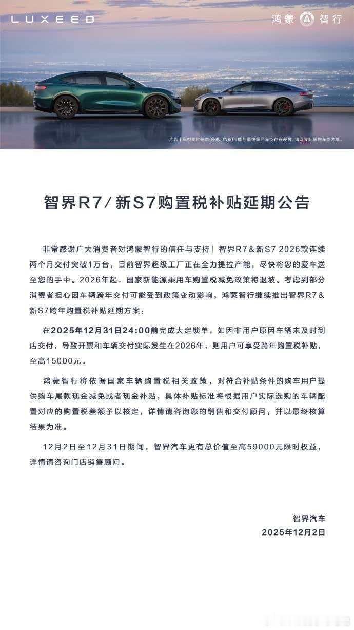 近日,智界车主胡先煦分享了与好搭子智界R7 2025一起出发的美好瞬间。此前在《现在就出发3》节目中,胡先煦就被智界R7种草,多次展示其功能并安利给贾冰,化身“野生销售员”;后来被偶遇私下驾驶智界R7出行,实力演绎“他推荐他真买”。本次视频沉浸式展示了智界R7前排双零重力座椅、KK前备箱和隔窗对讲机等功能,智界R7凭借超美颜值、超大空间、超强性能等硬核产品实力,也受到越来越多年轻人、年轻家庭的喜爱和认可。据悉,11月智界汽车交付突破10000台,连续2个月交付过万、连续3个月大定破万。12月31日24点前完成下定,还可享至高15000元跨年购置税补贴。胡先煦年轻就要智界出发