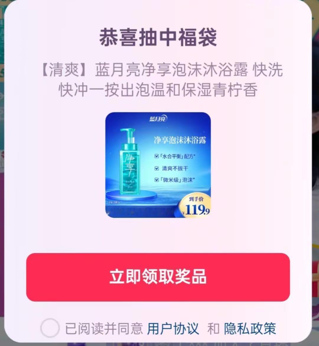 蓝月亮沐浴露真香!蓝月亮沐浴露 超级福袋中奖