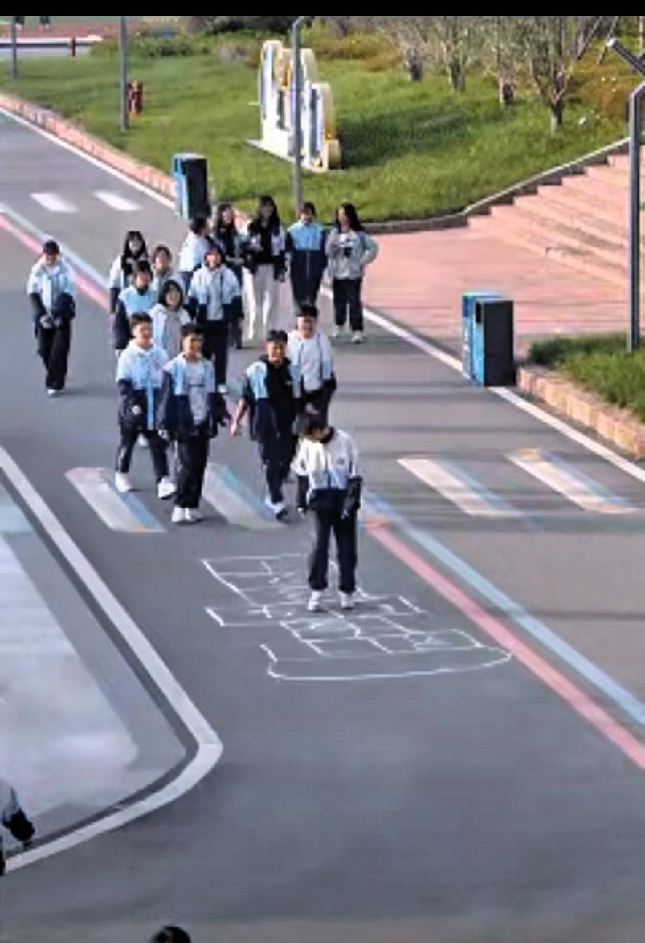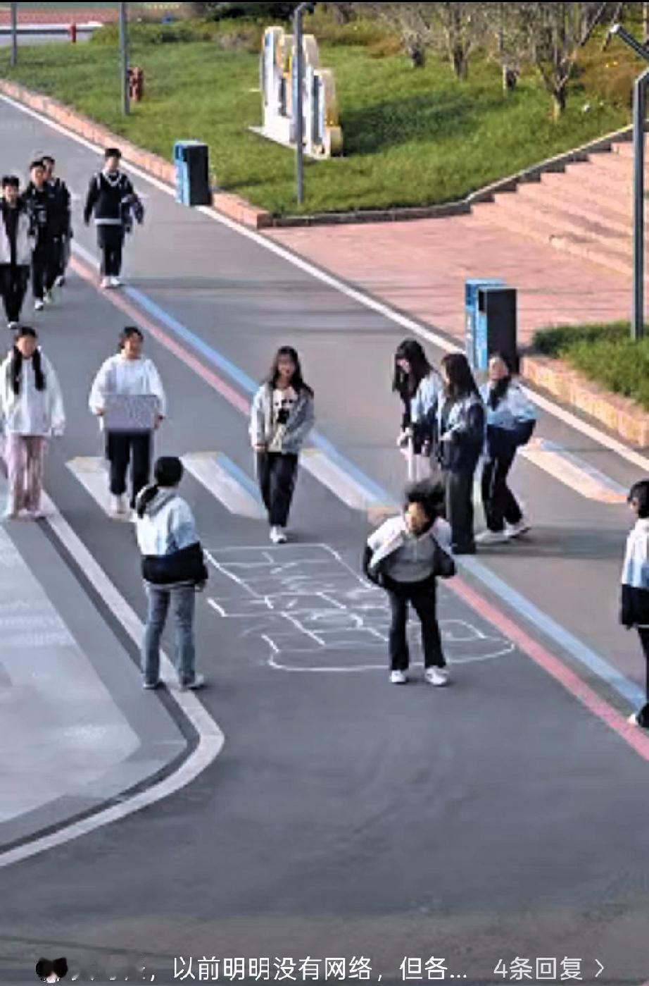 “解释不清了!”四川德阳,两个高中女生趁着课间,在上课的必经路上,用粉笔画了个"跳房子"的游戏,没想到这简单的几笔,竟勾起了一群人的回忆。 下课铃一响,学生们率先围了过来,有人直接单脚起跳,动作利落又熟练,围观的同学在一旁指点说笑,上课铃响起才意犹未尽地散开。 没过多久,巡逻的保安大叔路过,他先是驻足看了几秒,四下张望确认没人注意,才小心翼翼地抬起脚跳了起来,动作略显僵硬,嘴角却带着藏不住的笑意。 几位老师路过时也停下了脚步,慢慢踩着格子往前跳,每一步都透着认真,仿佛在重温一段久违的时光。 这一幕被分享到网上后,评论区满是共鸣。有网友感慨:“他们好像跳错了,没跳回去;又好像没跳错,谁的童年没有这样的格子呢?” 现在的孩子课余时间多是抱着手机、平板,很难体会到一块空地、一根粉笔、一颗石子就能带来的纯粹快乐。我们怀念的其实不是跳房子这个游戏,而是那段不用操心学业压力、不用顾虑生活琐事,只和伙伴们追着跑的轻松时光。 成长本就是一路向前的旅程,那些童年的格子,早被岁月悄悄藏在了记忆深处。