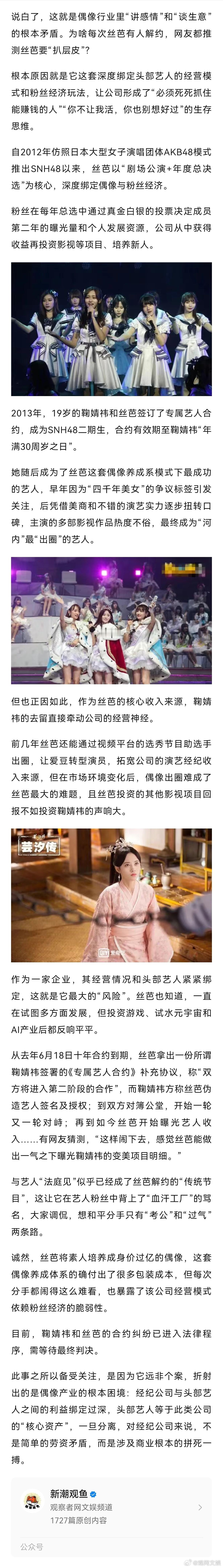 【丝芭晒鞠婧祎上亿“工资单”背后,经纪公司与头部偶像的“生死绑定”】丝芭鞠婧祎纠