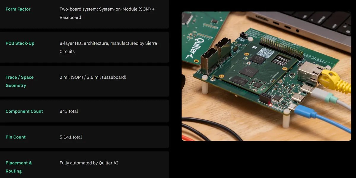 [硬件设计革命:AI操刀电脑设计,工时压缩91%]12月17日消息,科技媒体Tom'sHardware昨日(12月16日)发布博文,洛杉矶初创公司Quilter凭借ProjectSpeedrun项目,刷新了硬件设计记录:利用AI仅耗时一周便完成了一款包含843个组件的双印刷电路板(PCB)Linux电脑设计。通常情况下,设计这样一款复杂的PCB电路板,需要耗时约3个月,而Quilter仅耗时一周即宣告完成。更为关键的是,该原型机在制造完成后,首次上电便成功启动并运行了Debian操作系统,未出现任何硬件级错误。