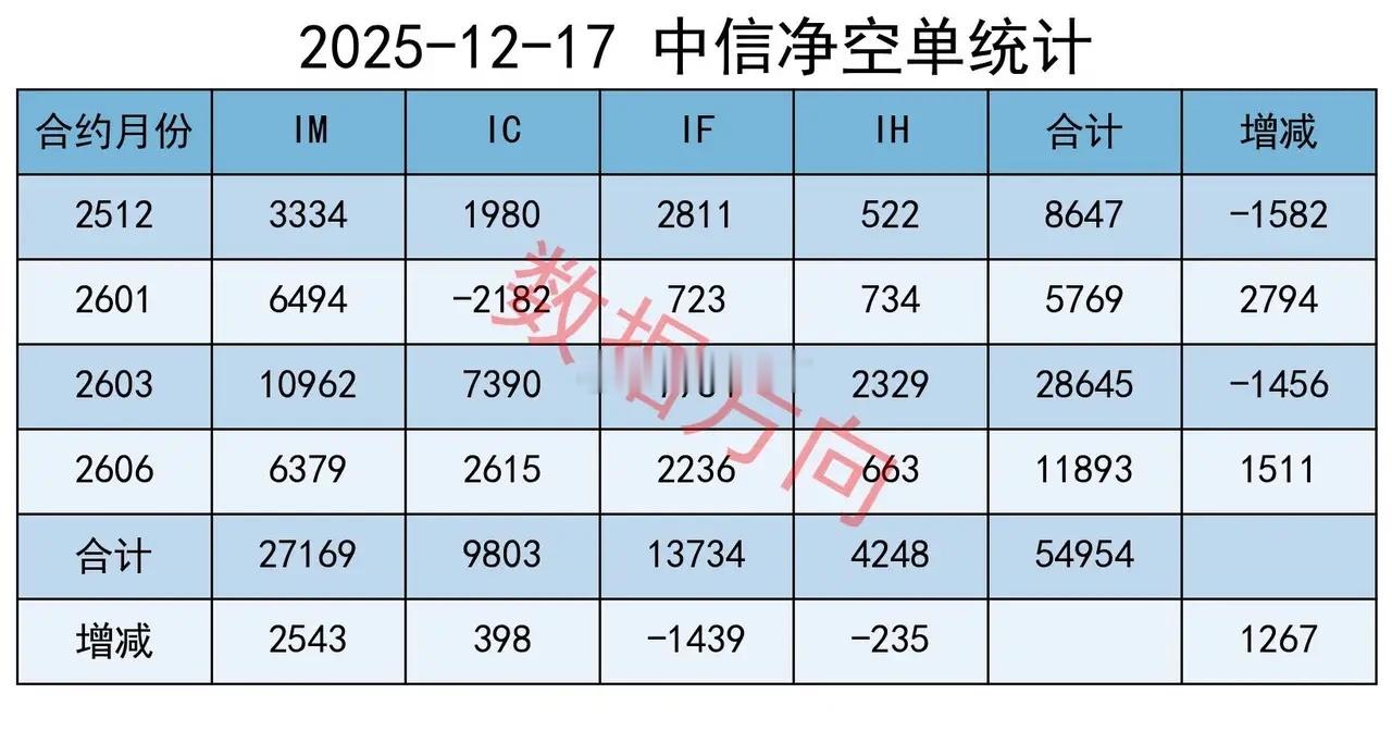 敢信,加空超过14000手!大盘早上在水面上窄幅震荡,午后强势崛起,全A指数涨幅1.55%,算力硬件、能源金属强势上涨,海南、国防军工趁机调整,两市个股上涨率67%,较昨天放量5%。所有指数全部上涨。创业板指、科创50指数,涨幅分别为3.39%、2.47%,领涨两市。如果只看指数,无论是上证指数、深证成指,还是双创,今天的涨幅都大于昨天的跌幅,实现反包。但如果看个股,景象完全不一样。今天收盘价高于前天的个股只有1557只,占全部A股的比例只有30%,相当于7成个股都没能收复昨天的失地。数据方向一直强调的观点,要远离那些没有业绩支撑的小微品种、垃圾股,尽量拥抱在指数里权重占比高的、老牌债优品种,就是这个道理。把时间拉长了看,很多指数都会沿着某条曲线不断前行,但大部分个股可能会掉队。虽然盘面一片喜气洋洋,但从复盘数据看,两者合计加空14000手!行业有色金属、石油石化、钢铁,一起进入榜单前10名,尤其是有色金属,大涨3.03%,个股上涨率91%,放量10%老美非农就业岗位增加超预期,不过11月失业率意外升至4.6%,创下自2021年9月以来的最高水平,市场依然保持对于美联储降息两次的预期。美元指数回落,大宗商品获得支撑。能源金属狂涨5.23%。宜春市发布《关于拟公告注销27个采矿权的公示》,拟对27宗采矿许可证予以注销,锂矿复产预期转弱带动价格上涨,市场趋之若鹜。贵金属强势上涨。国际金价逼近历史新高。白银价格再创历史新高,其今年的涨幅已超过110%,比绝大多数股票涨得都要好。美国总统特朗普下令封锁所有委内瑞拉受制裁的油轮,国际油价应场上涨。非银金融,涨幅1.93%,个股上涨率84%,大幅放量45%在此之前,保险板块已经有所异动。今天午后、保险+证券携手发力上涨。1层近期明确表示,要适度拓宽券商资本空间与杠杆上限,从价格竞争转向价值竞争;1层近期还下调了部分股票投资及保险业务风险因子,释放险企资本压力并带来增量资金预期。电子,涨幅2.48%,个股上涨率79%,放量7%之前的摩尔上市已经创造了历史,英伟达用了17年才实现600亿美元市值,摩尔只用了5个交易日就达到同样的成就。本来以来摩尔已是最大神话,结果今天上市的沐曦再次创造神迹。其发行价为104.66元,最高摸高至895元,中一签的盈利突破40万元。相比之下,摩尔中一签首日盈利为28万。从这两个票的表现来看,市场对于芯片国产替代的强烈预期。通信,涨幅5.07%,个股上涨率68%,放量26%前文所述,白银今年的涨幅高达110%。这里的算力硬件,是今年少数能够超过白银的品种。根据TrendForce集邦咨询最新研究,2025年全球800G以上的光收发模块达2400万支,2026年预估将会达到近6300万组,成长幅度高达2.6倍。热力图此图用于观察市场的强度结构。通信设备(99)、国防军工(94)、有色金属(94),三个行业的强度大于90,分别代表了科技、高端制造和大宗商品。国防军工(94)、家用电器(73)、电力设备(69)、机械设备(65)、汽车(41),高端制造方向的平均强度为68。大宗商品方向的平均强度为59。科技方向的平均强度为54。期指持仓某信,加空1267手;分别对IC、IM加空398手、2543手,分别对IH、IF减空235手、1439手;平仓买单6005手,平仓卖单4738手。其他主要玩家,加空13118手;四大品种全部加空,分别对IH、IF加空269手、6001手,分别对IC、IM加空3653手、3195手;平仓买单6156手,加仓卖单6962手。昨天减空2227手,只看当天是好信号,但是和上周五加空的1万多手相比,有些不够看。今天大盘强势上涨属于超出预期,但不能高兴太早,从复盘数据看,两者合计加空14385手,力度非常之大,不是好信号!除非,认为后面能够出现去年“9.24”那样的行情,那么可以把今天的加空认为是套保。否则,咱们还是回顾一下历史,看看以前发生过什么事情。单日加空14385手,此数据能够在历史上排在第3位,仅次于2024年10月8日加空18337手,和2024年11月7日加空16531手。大家可以看看,上两次之后发生了什么事情。今天,合计对IH、IF加空4596手,合计对 IC、IM加空9789手两者因为昨天持有的92189手净空单,会在今天的行情中亏损20亿操作完成后,共持有净空单107159手。时隔41个交易日,净空单再次突破10万手。