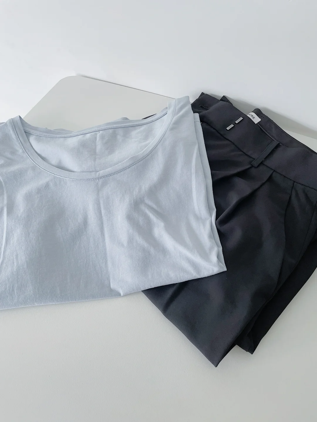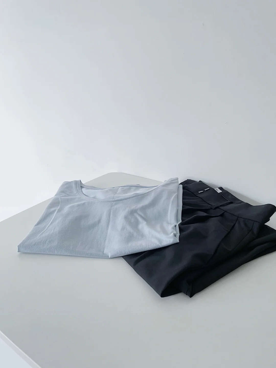 今天我的穿搭简单却好舒服。高达28度气温,拿出久违的短袖,浅蓝色系莫兰迪色系,加上一条透气西裤,我又爱上这样的天气这样的自己了。