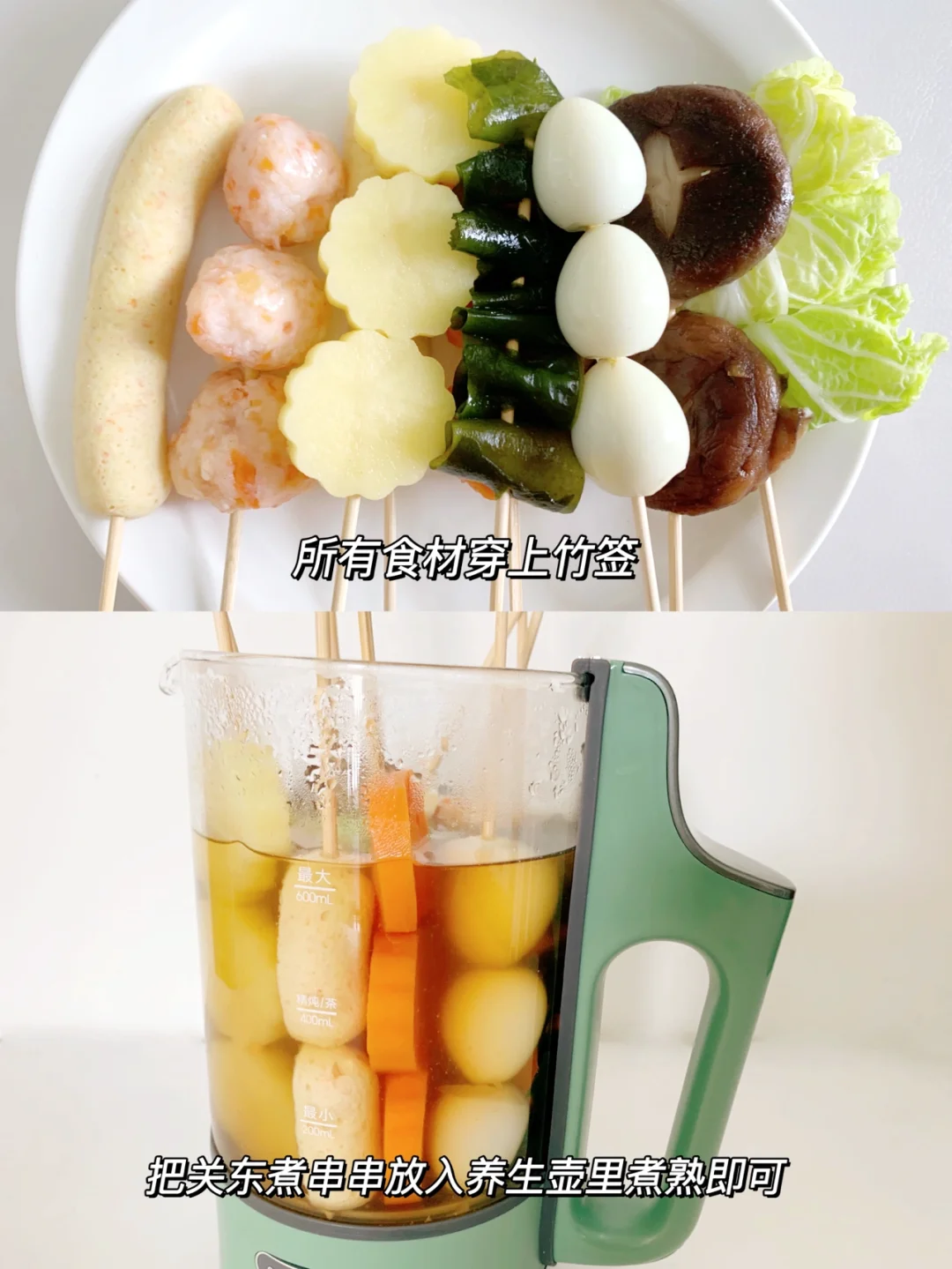4⃣️将关东煮串串放进养生壶里,选择温度100煮熟即可