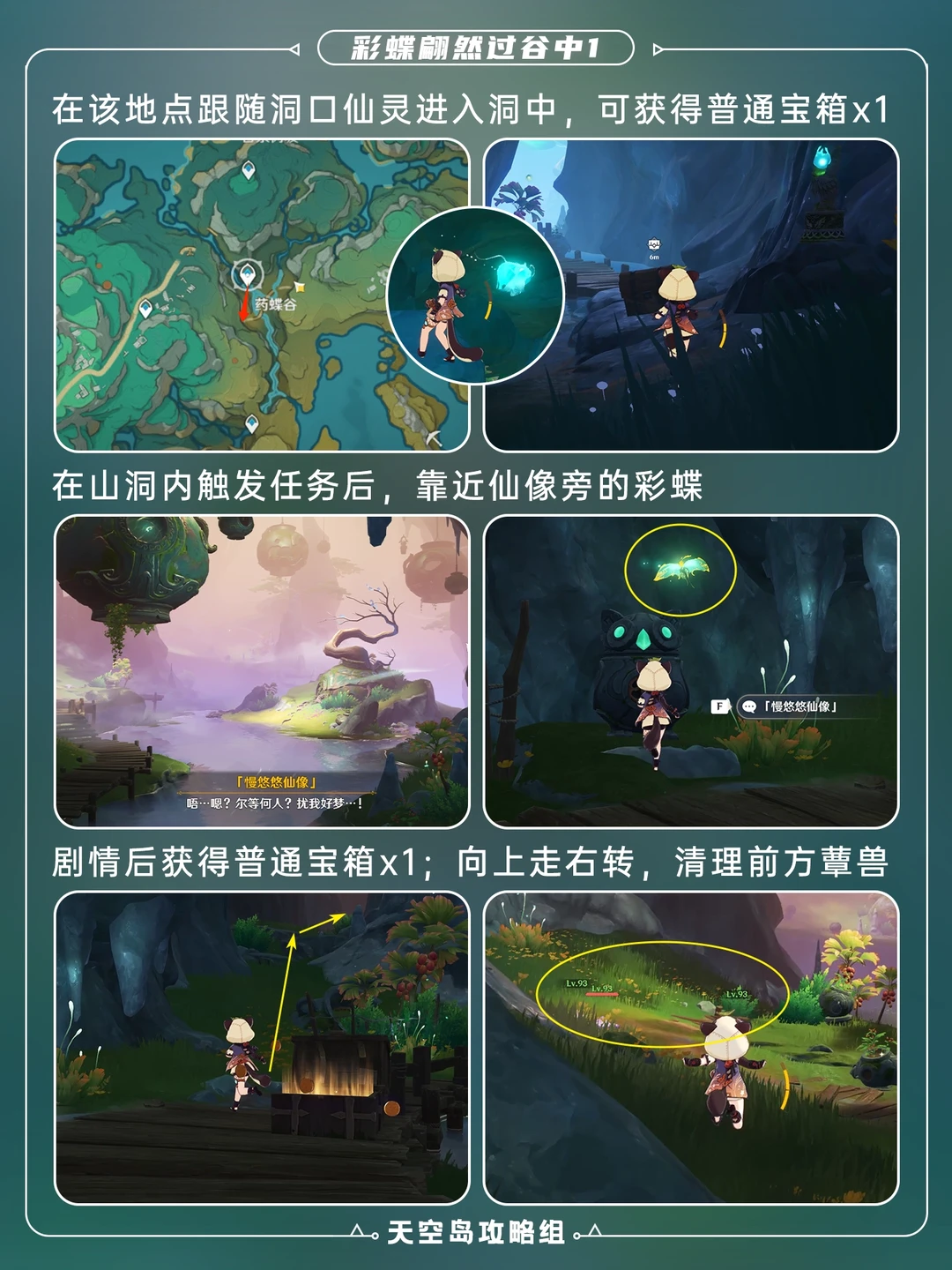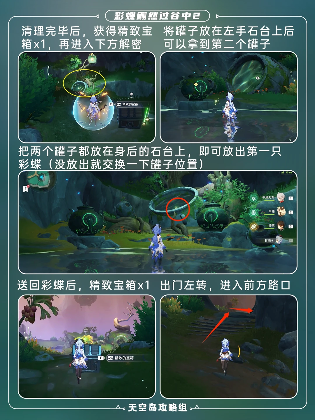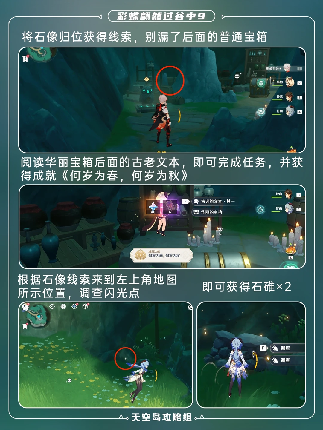 沉玉谷隐藏世界成就「彩蝶翩然过谷中」攻略~ 可获得40原石+12宝箱+成就《何岁为春,何岁为秋》! 跟随攻略将5只彩蝶赶入罐中,并将石像归位即可。 ✨别忘记阅读华丽宝箱文本获取成就[哇R]