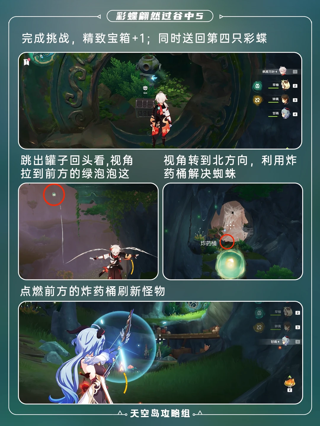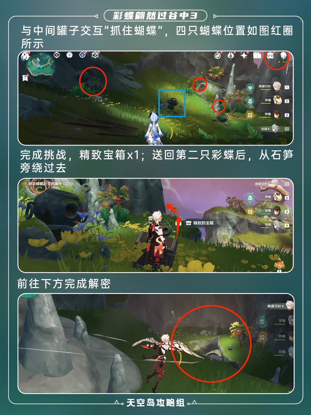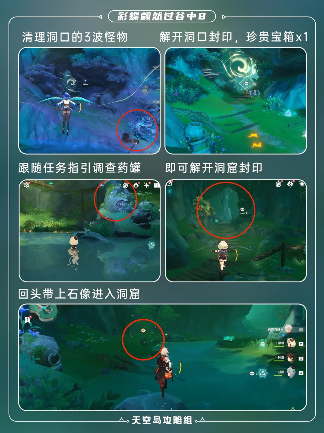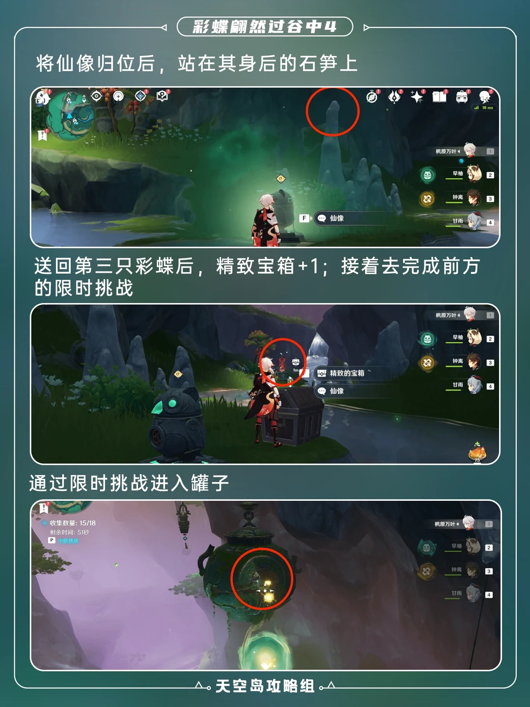 沉玉谷隐藏世界成就「彩蝶翩然过谷中」攻略~ 可获得40原石+12宝箱+成就《何岁为春,何岁为秋》! 跟随攻略将5只彩蝶赶入罐中,并将石像归位即可。 ✨别忘记阅读华丽宝箱文本获取成就[哇R]