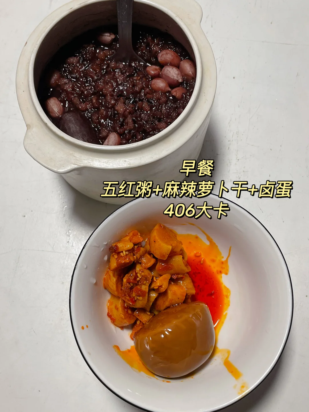 早 五红粥+卤蛋+麻辣萝卜丁
