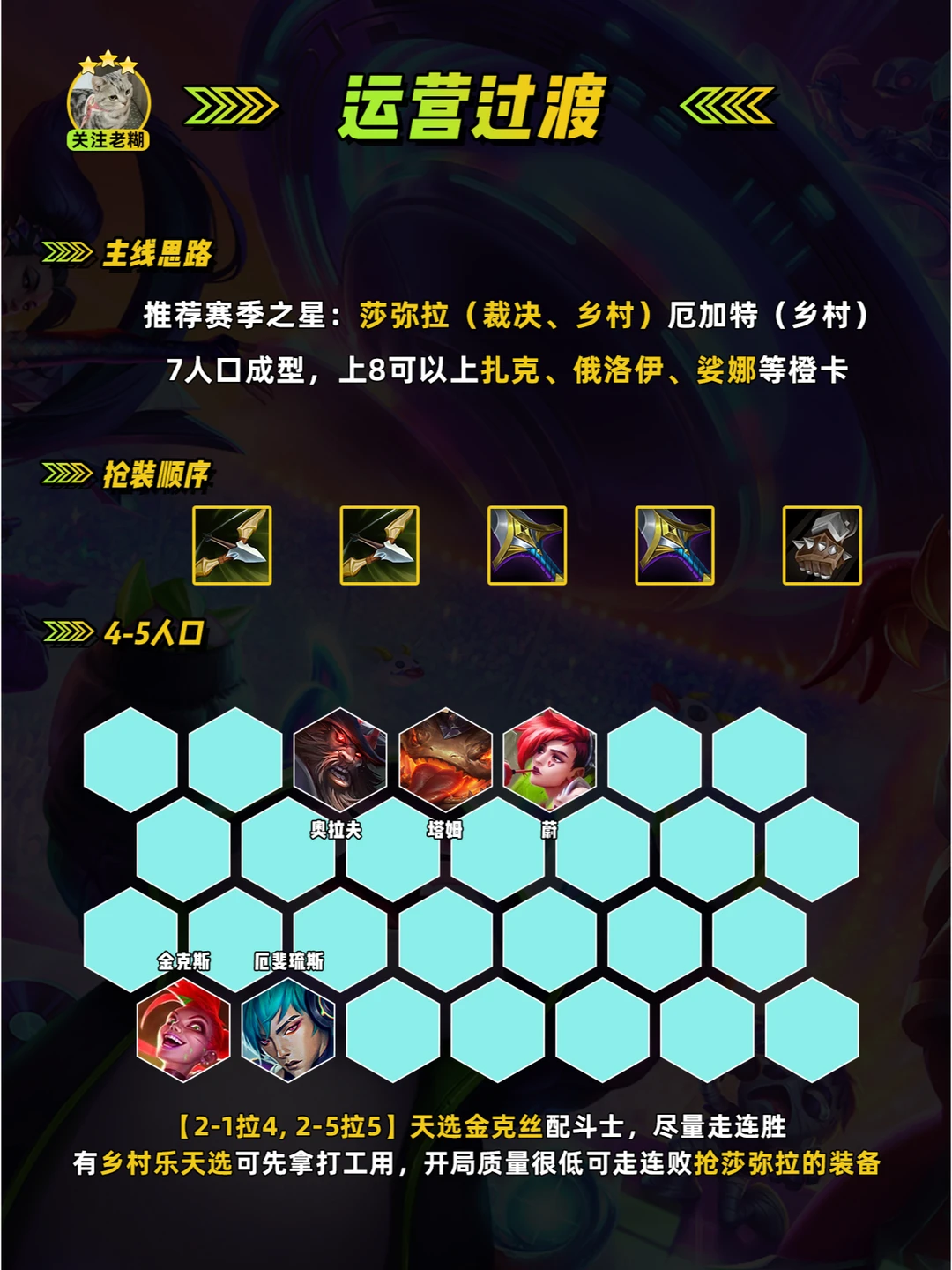 S10金铲铲开服冲分必学阵容,乡村莎弥拉!