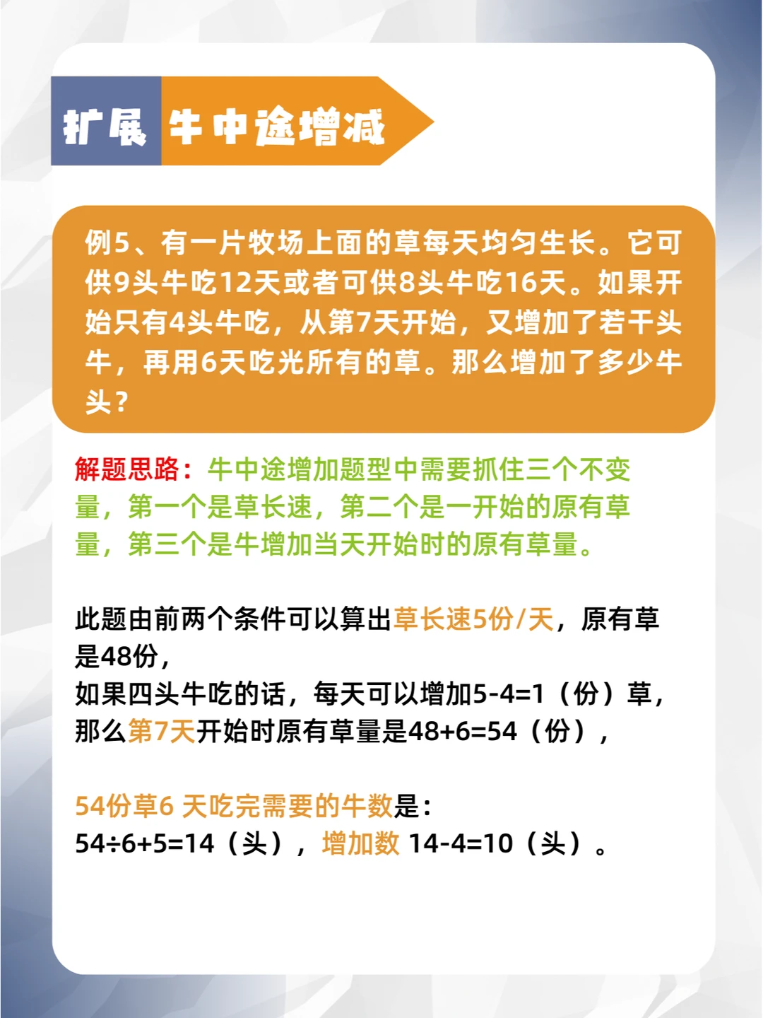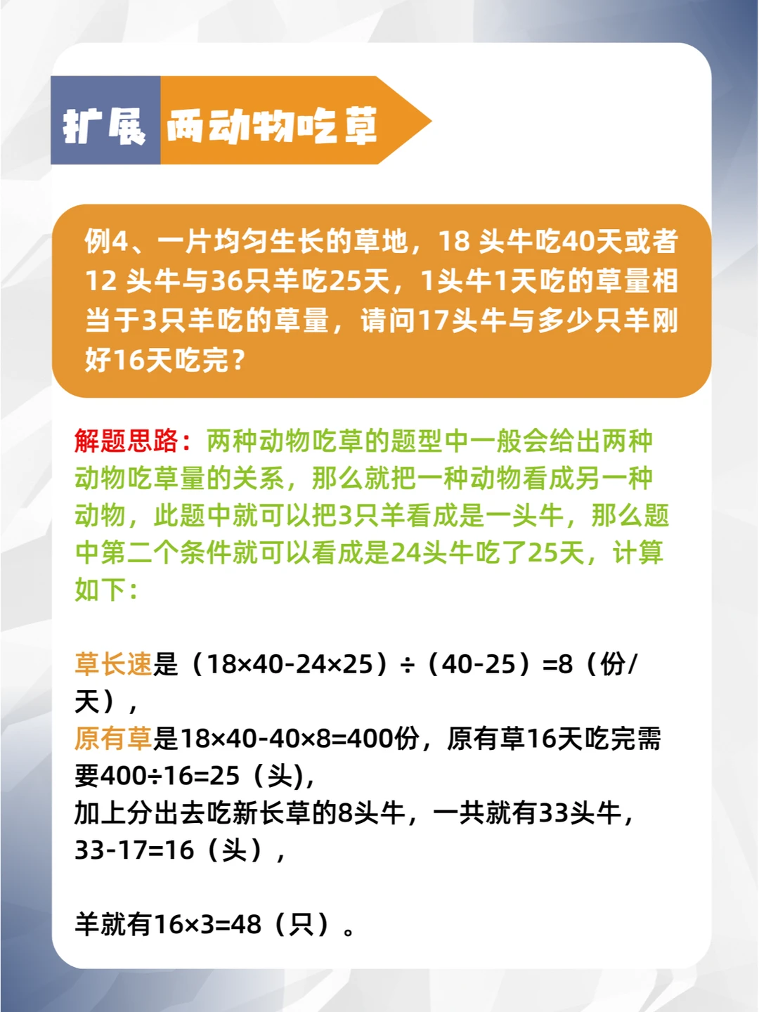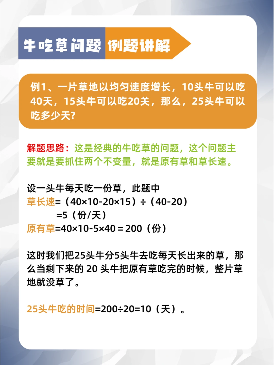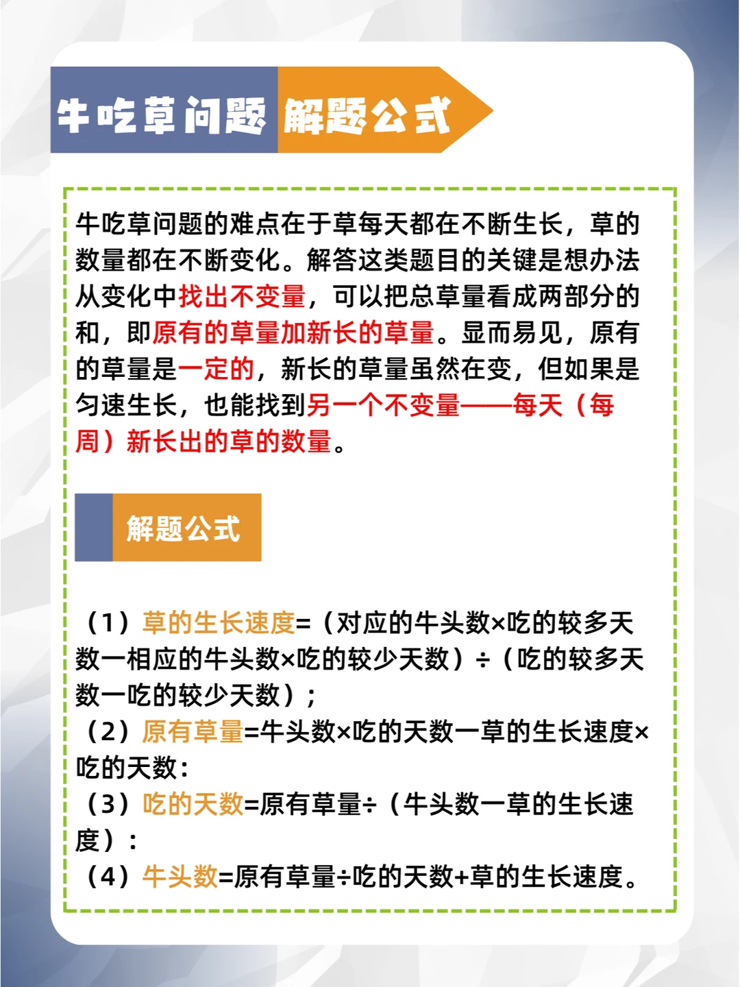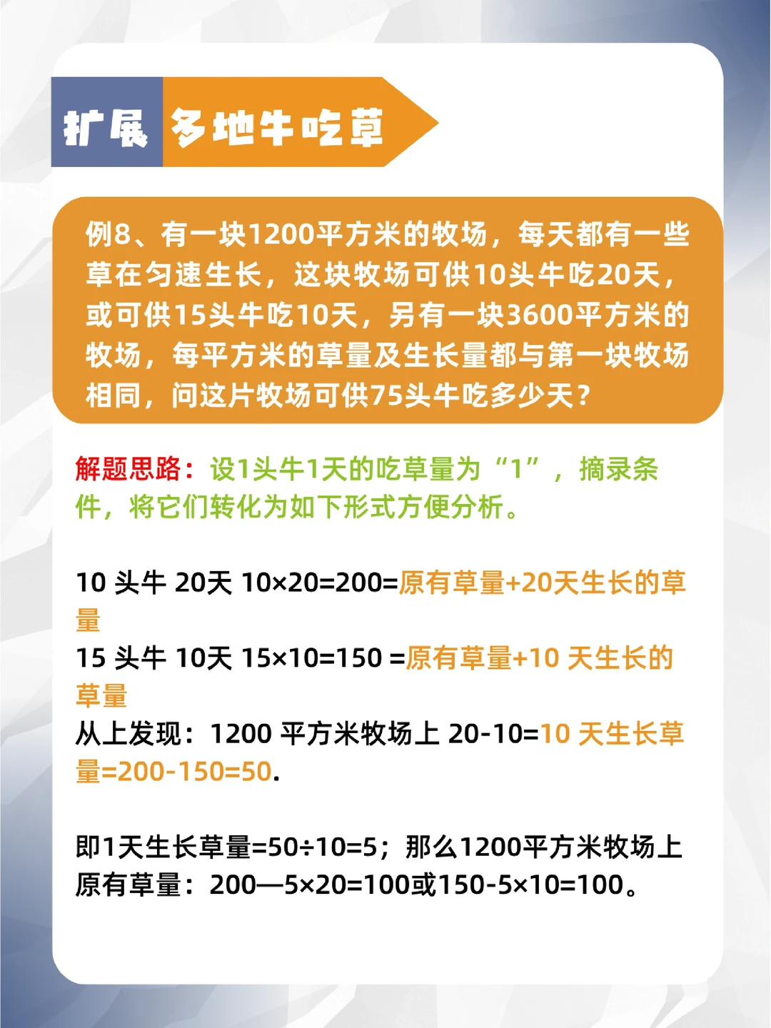 📚小学奥数“牛吃草”问题举一反三,扩展八种题型问题,进行解题思路点拨和例题讲解,带孩子啃透拿高分💯