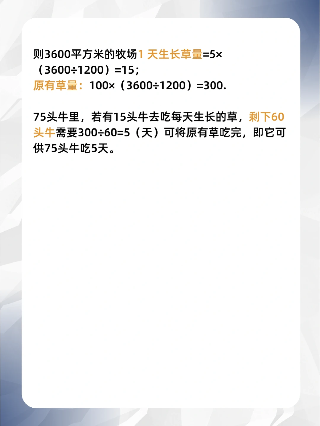 2️⃣原有草量=较长时间×长时间牛头数-较长时间×生长量。