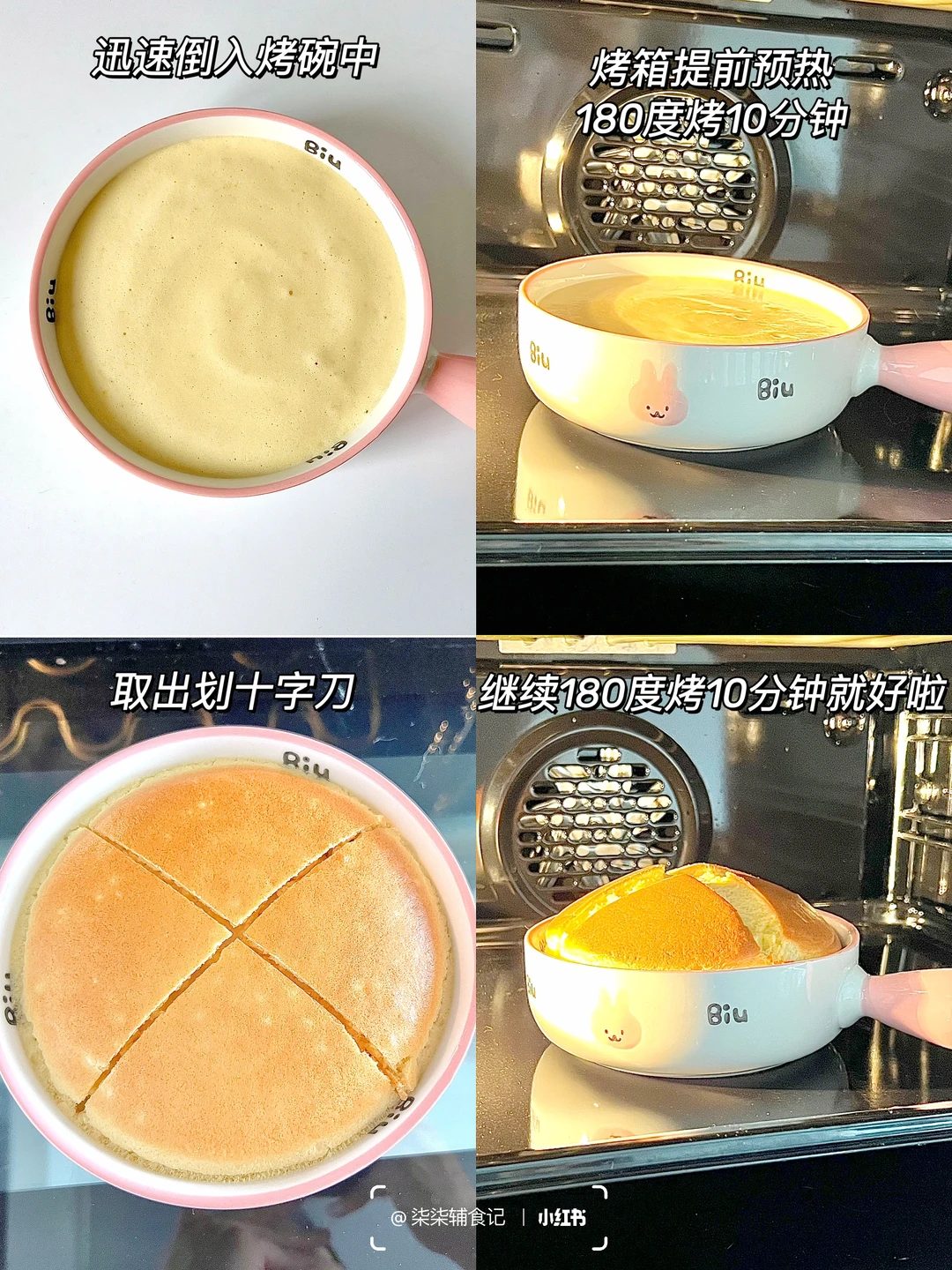 ▫️蛋糊迅速倒入碗中,烤箱提前预热,180度烤10分钟