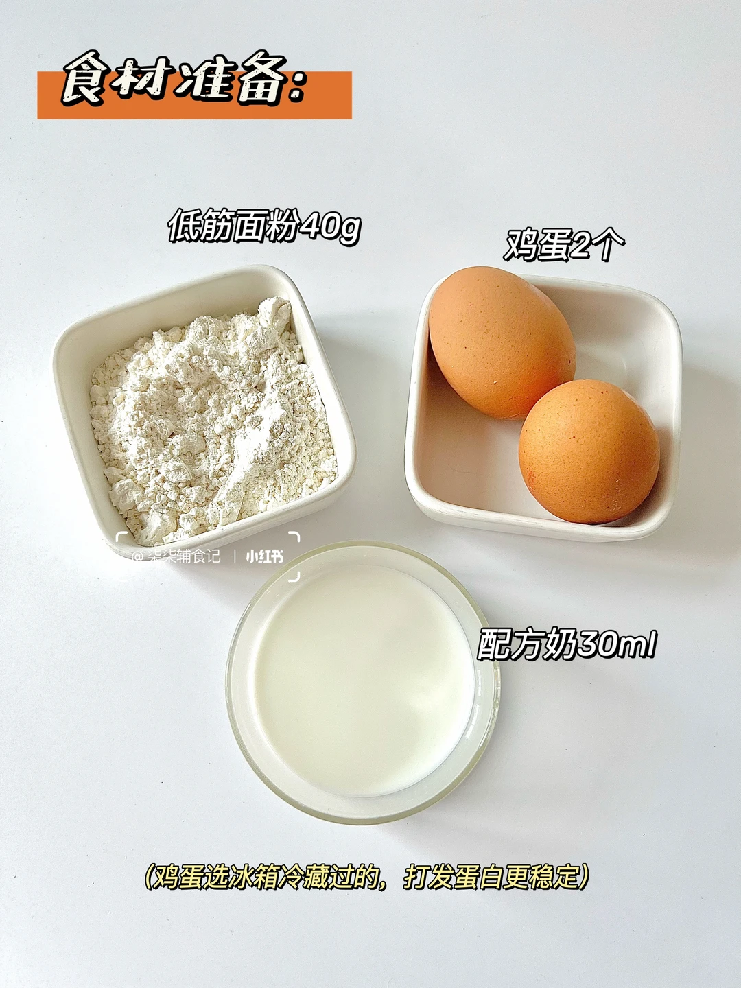 低筋面粉40g、配方奶30ml、鸡蛋2个