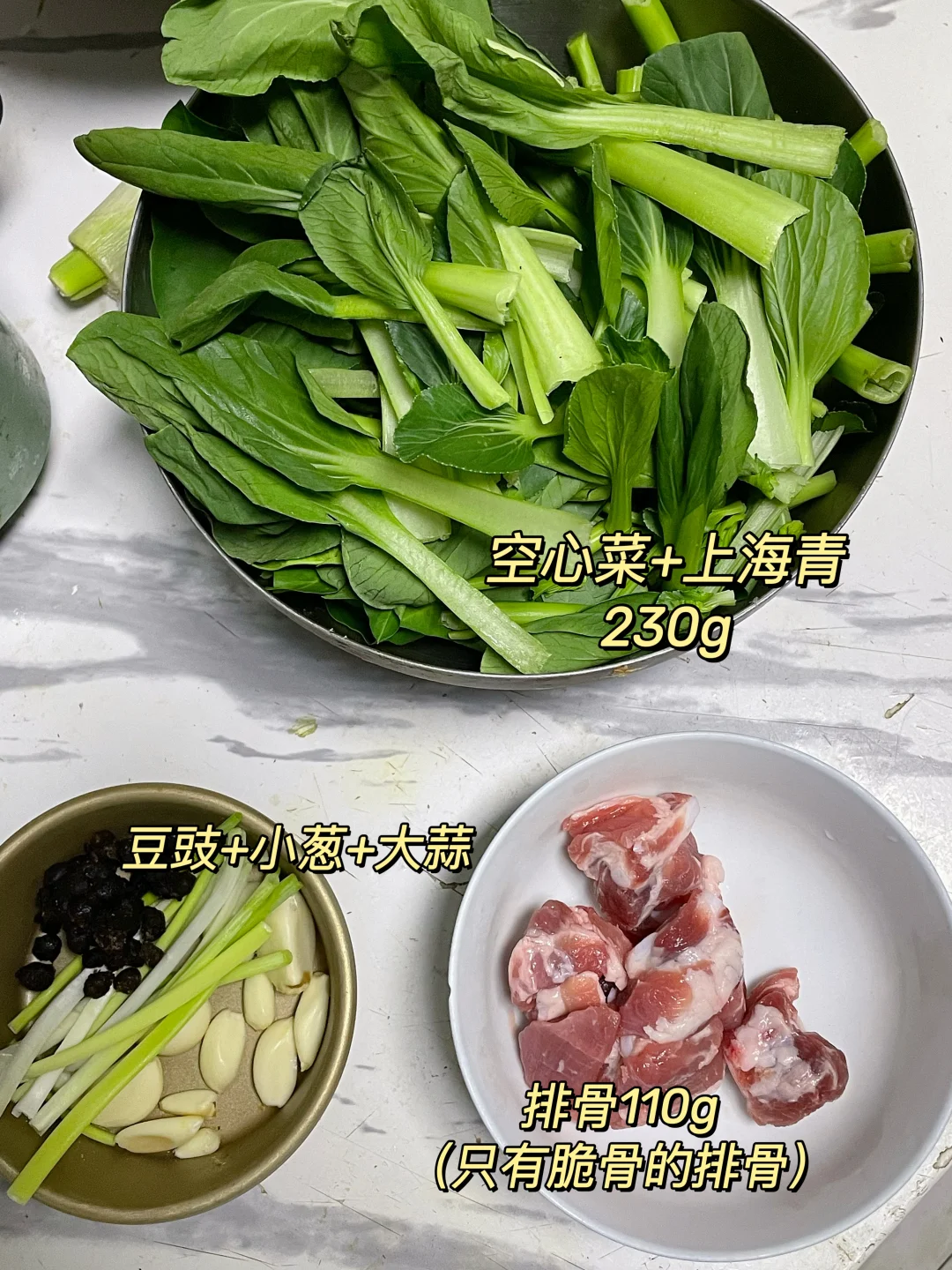 午 米饭+炒青菜+豉汁排骨