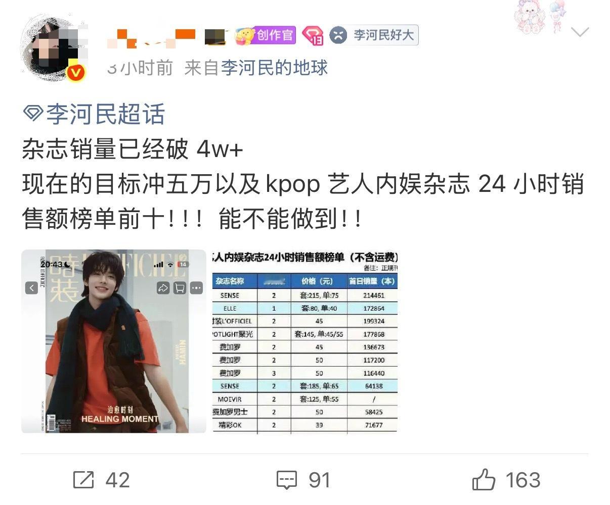 李松河和李河民粉丝目前都在冲击kpop 艺人中国杂志首日销售额榜单前十 可颂已经开始开香槟了 真的不会被偷塔吗?