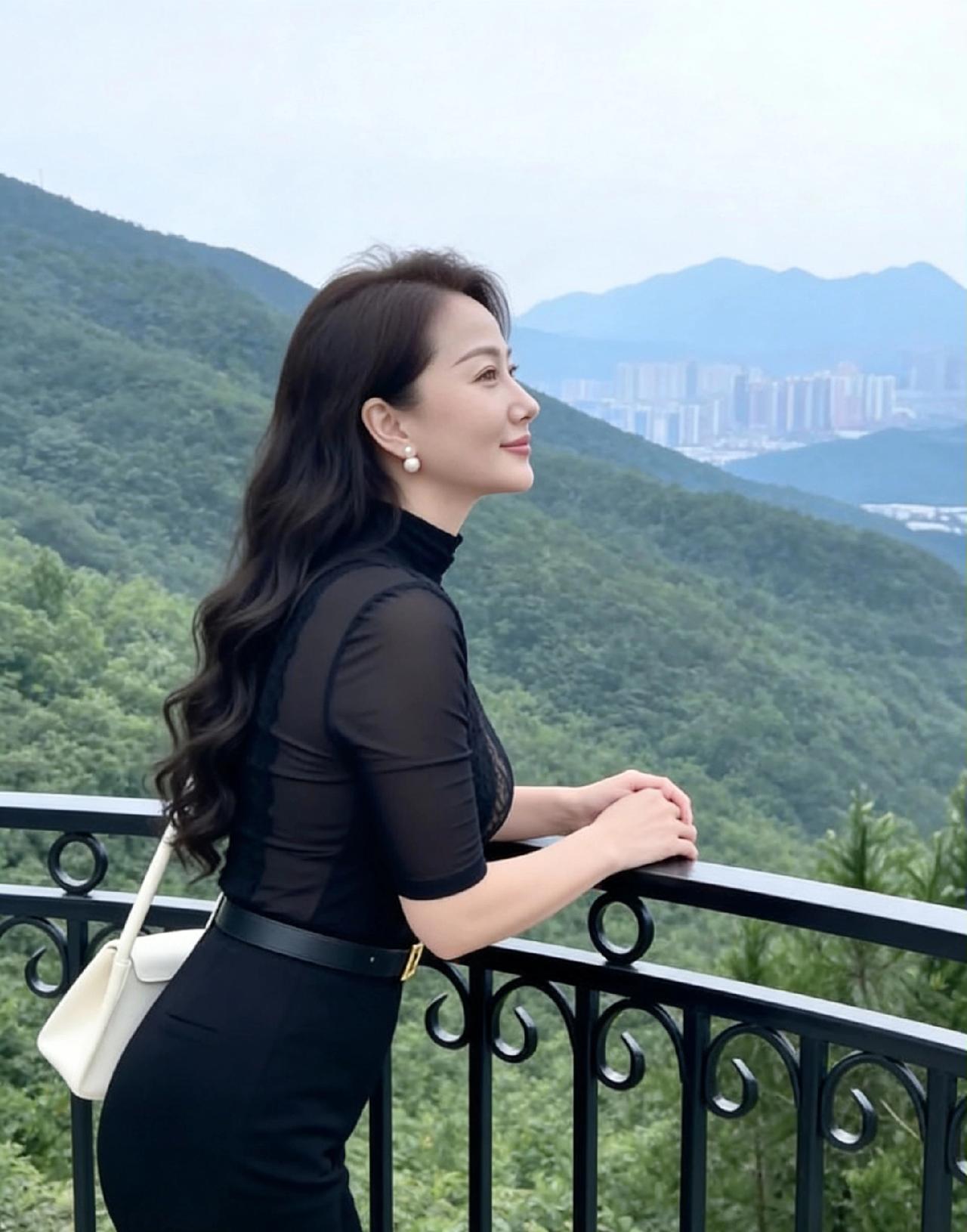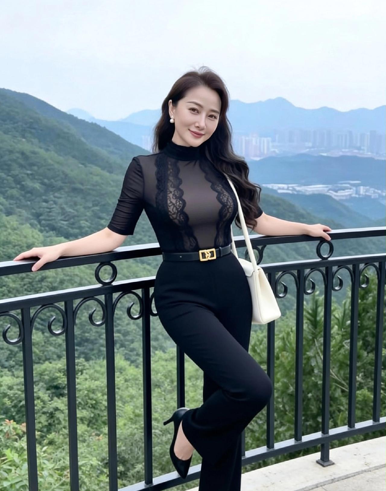 姐姐站在山景前,优雅得像幅画!黑色蕾丝上衣透着若隐若现的性感,高领和收腰设计衬得身段曼妙,珍珠耳环配白包,细节里都是精致。长发微卷垂肩,笑意温柔又自信,背景青山叠翠,她却比风景更夺目。这气质又飒又柔,真的美到让人移不开眼!美女人像群 白蕾丝穿搭 黑色蕾丝穿搭 轻熟蕾丝风穿搭 气质蕾丝穿搭 气质蕾丝 温柔风蕾丝上衣 气质黑色蕾丝衫