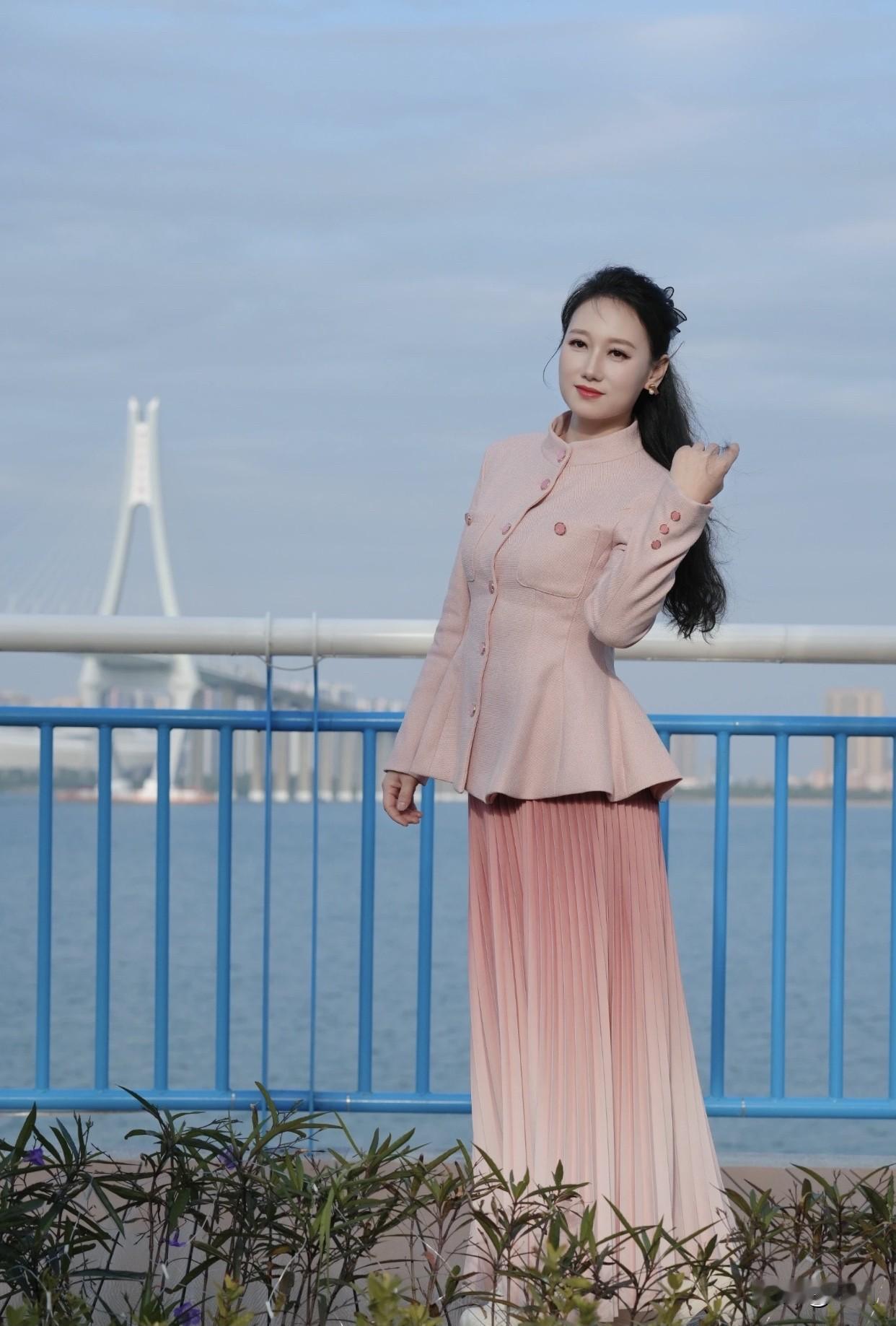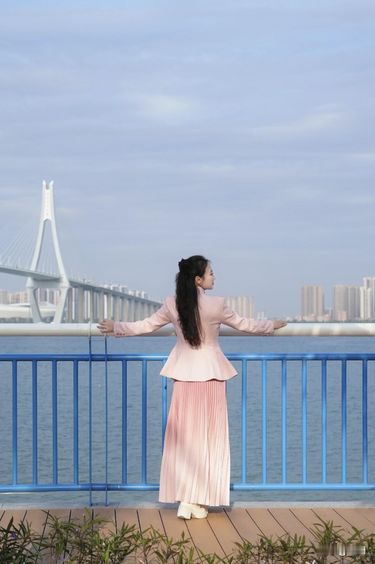 舒服又好看的穿搭有哪些海风轻拂,粉裙飘逸,桥上少女,心旷神怡。