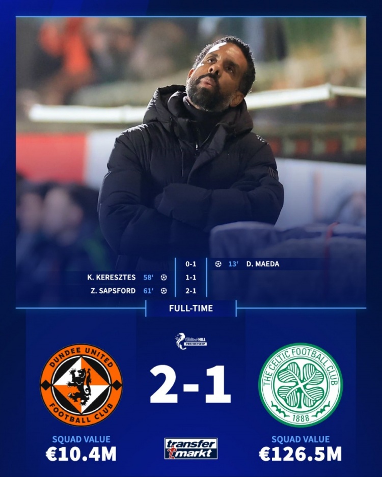 直播吧12月18日讯北京时间今天凌晨进行的苏超比赛,凯尔特人客场1-2不敌邓迪联。